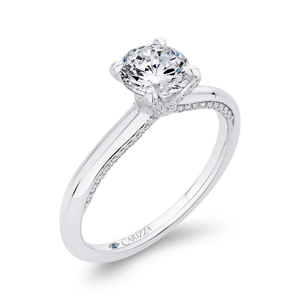 Round Diamond Halo Engagement Ring in 14K White Gold (Semi-Mount)