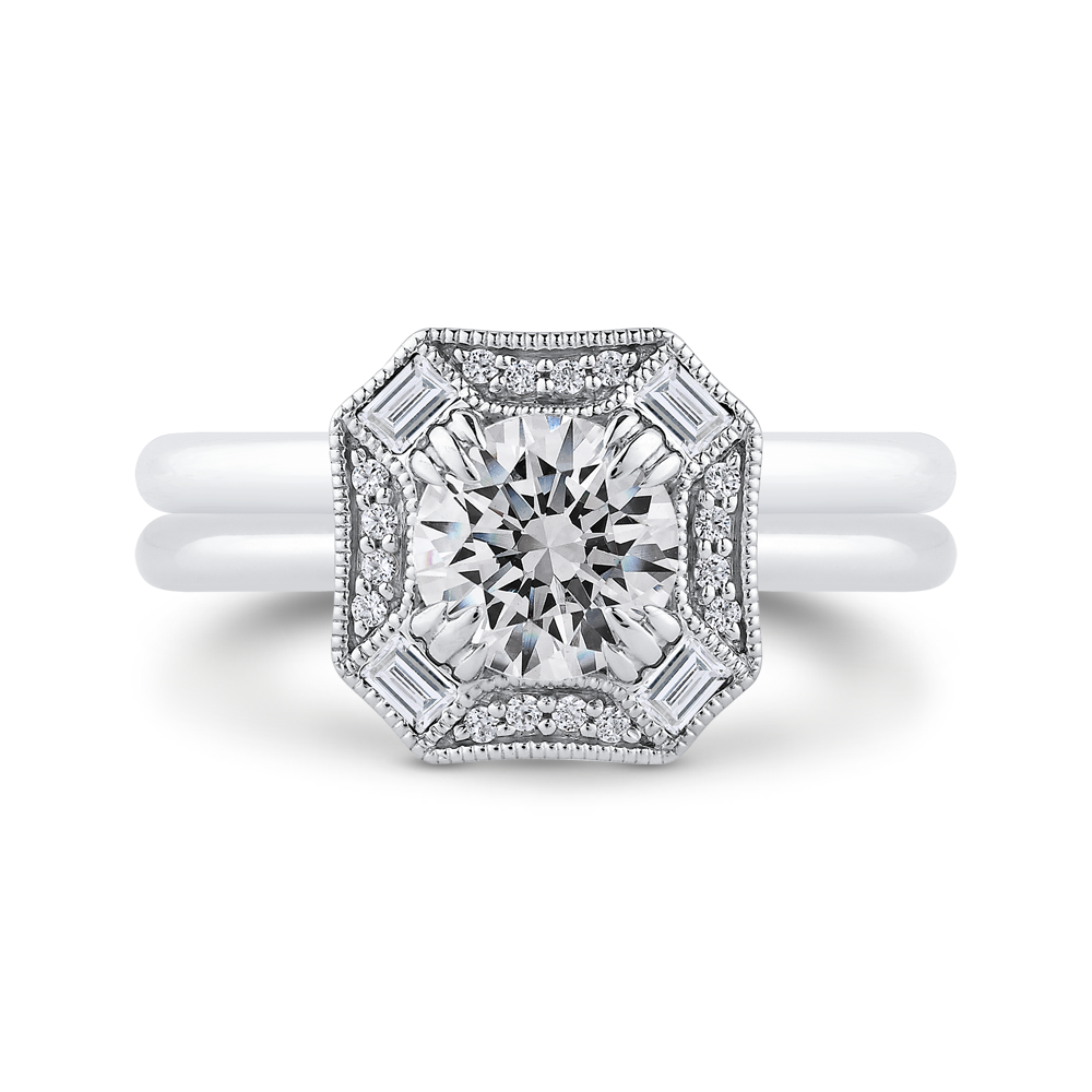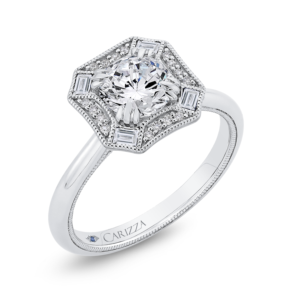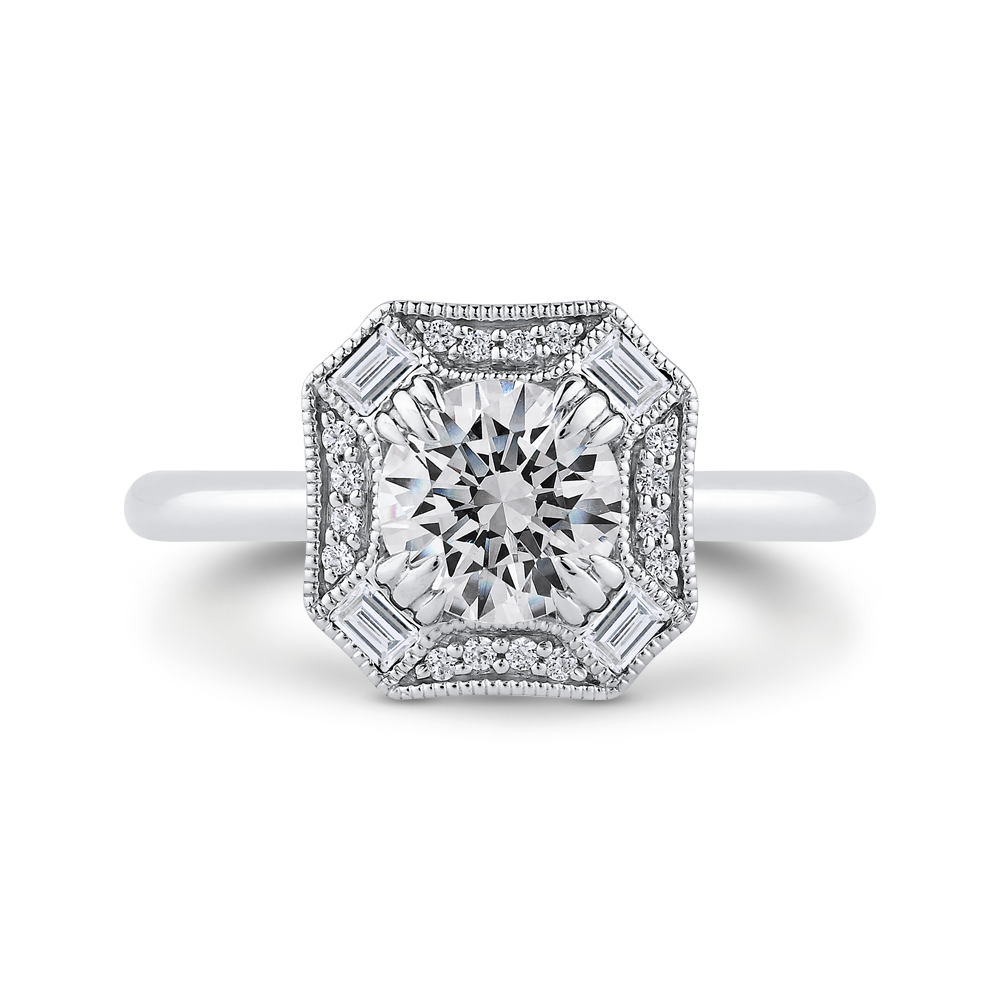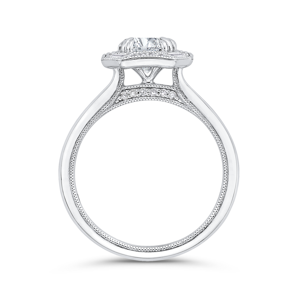 Round Diamond Halo Engagement Ring in 14K White Gold (Semi-Mount)