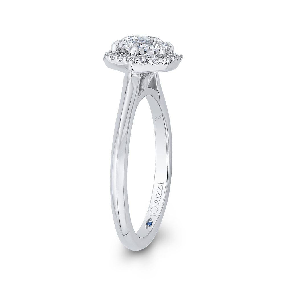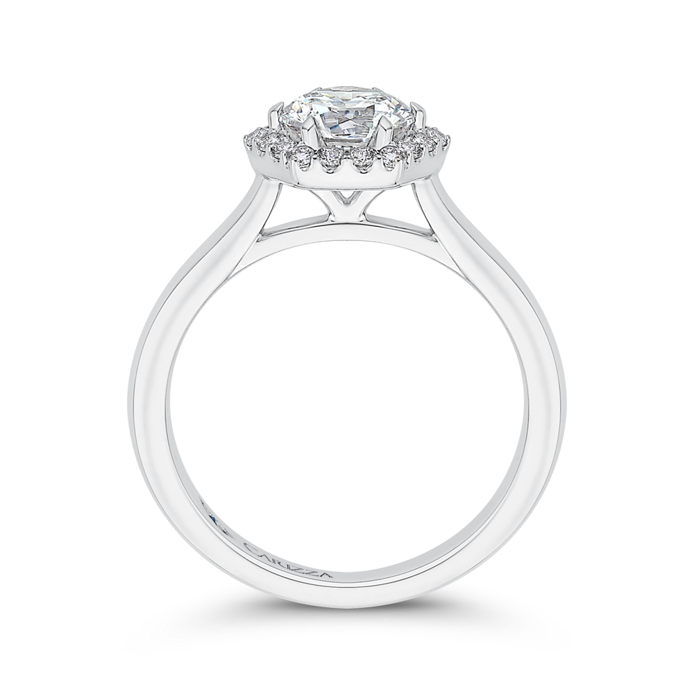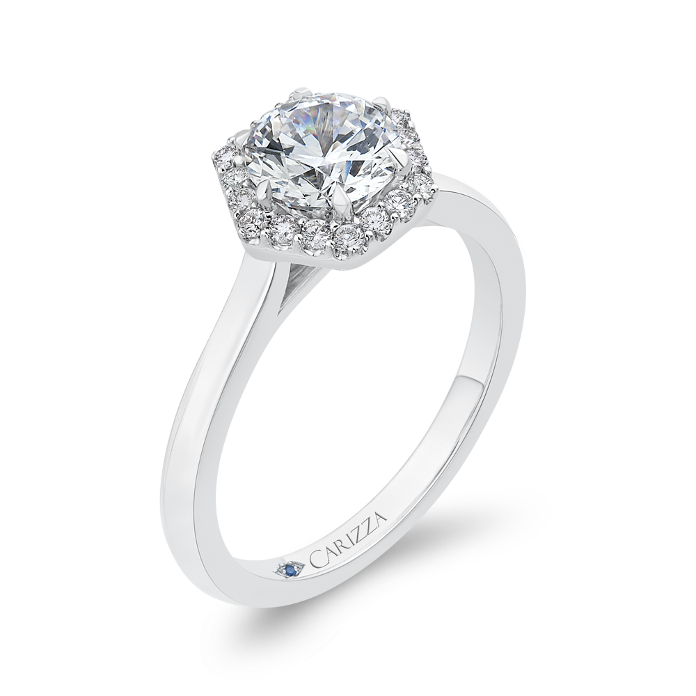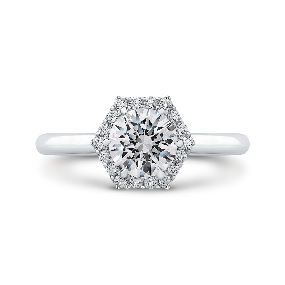 Round Diamond Hexagon Shape Halo Engagement Ring in 14K White Gold (Semi-Mount)