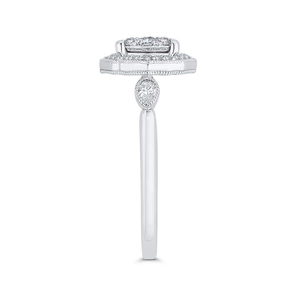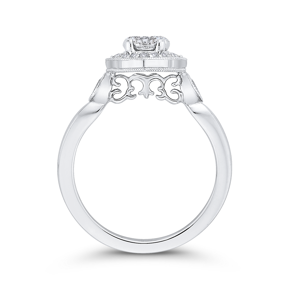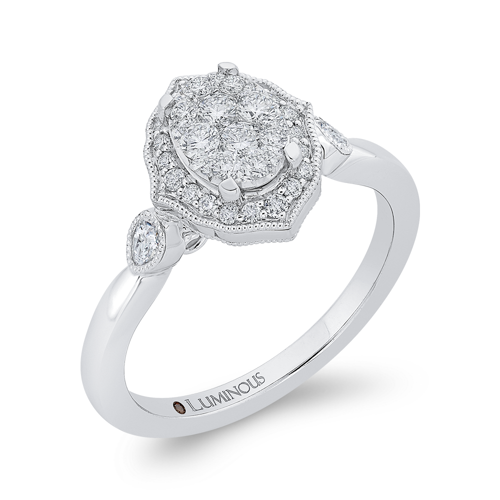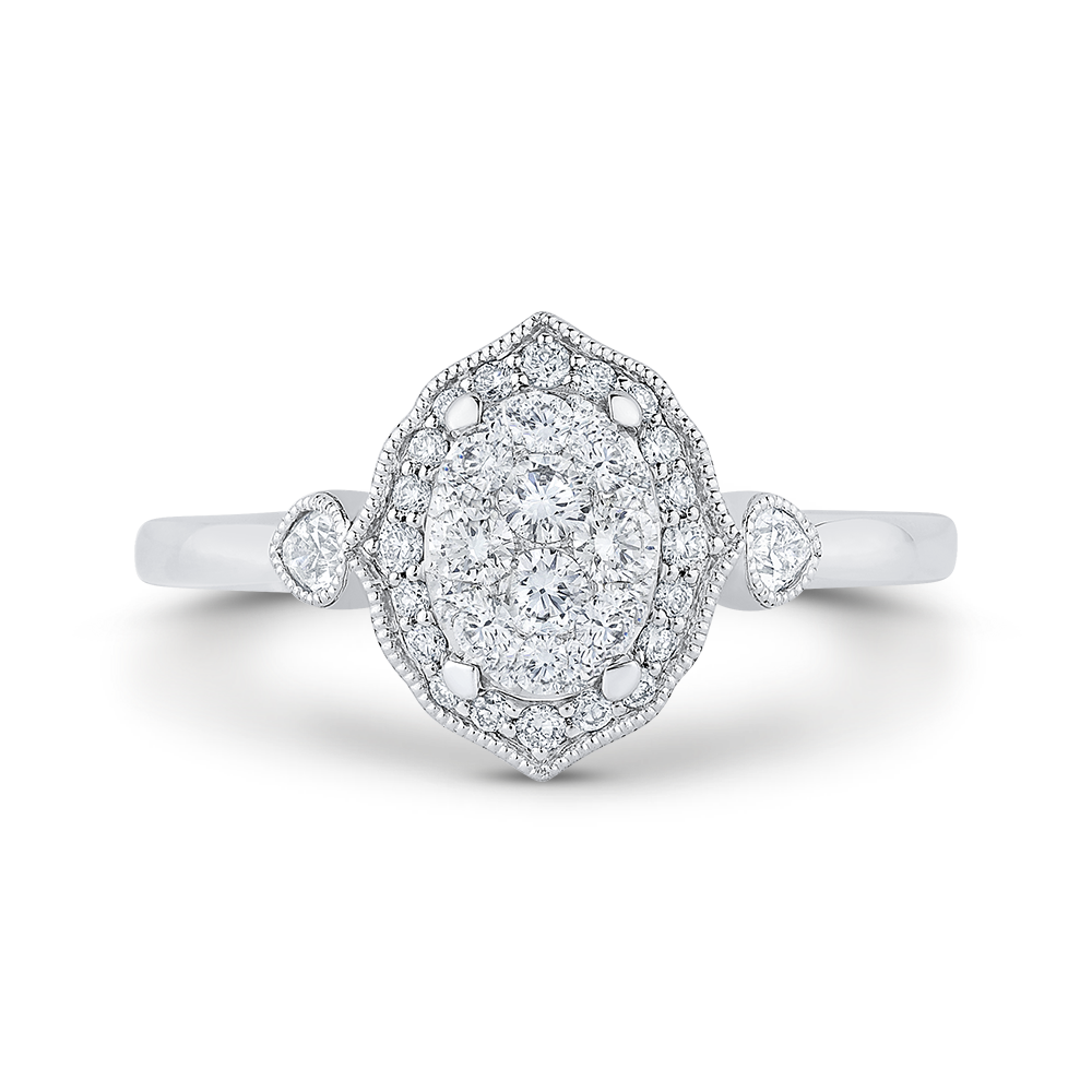 Round Diamond Oval Shape Halo Engagement Ring in 14K White Gold