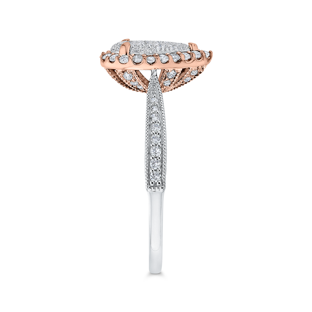 Round Diamond Pear Shape Halo Engagement Ring in 14K Two Tone Gold
