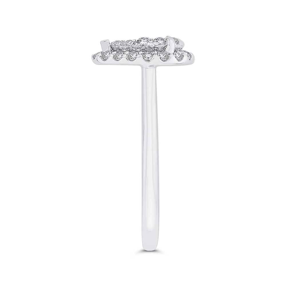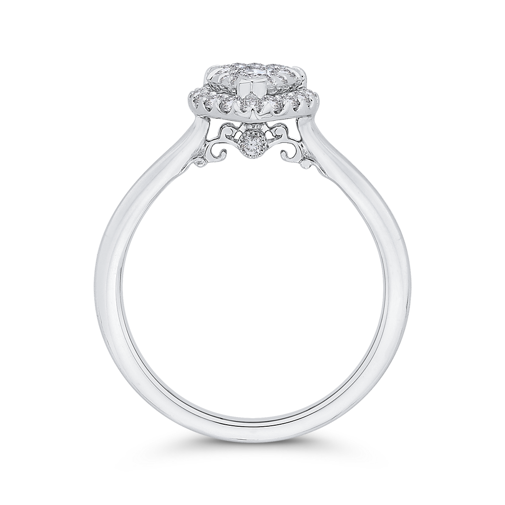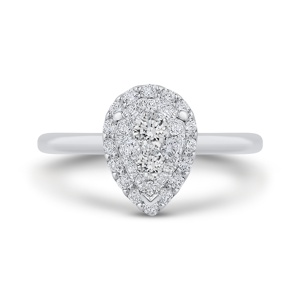 Round Diamond Pear Shape Halo Engagement Ring in 14K White Gold