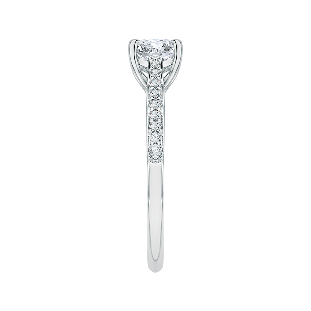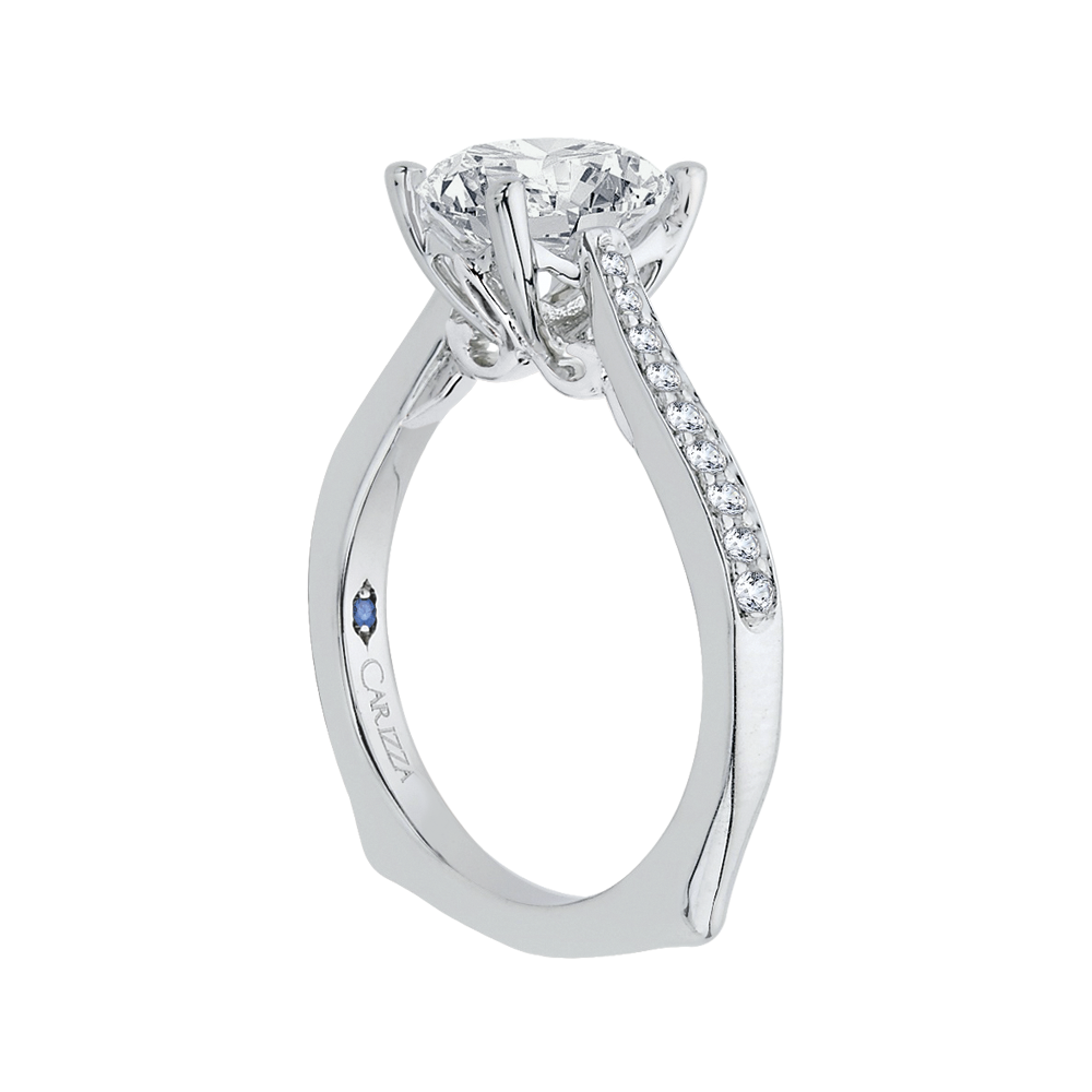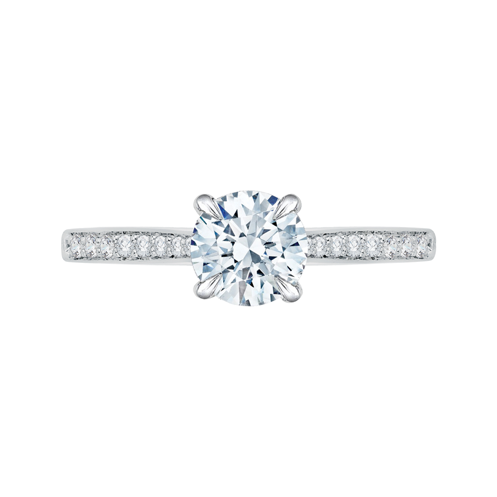 Round Diamond Solitaire with Accents Engagement Ring in 14K White Gold (Semi-Mount)