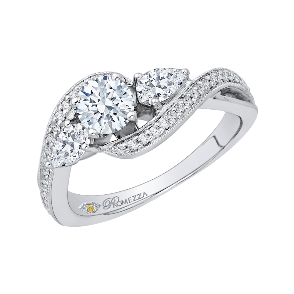 Round Diamond Three-Stone Engagement Ring in 14K White Gold