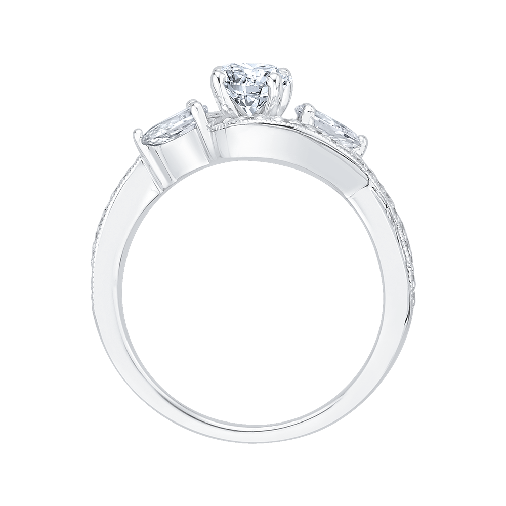 This exquisite three-stone engagement ring features a dazzling round diamond set in a timeless 14K white gold band. The classic design symbolizes past, present, and future love, making it the perfect choice for a proposal or anniversary gift. With its elegant simplicity and brilliant sparkle, this ring is sure to capture her heart.