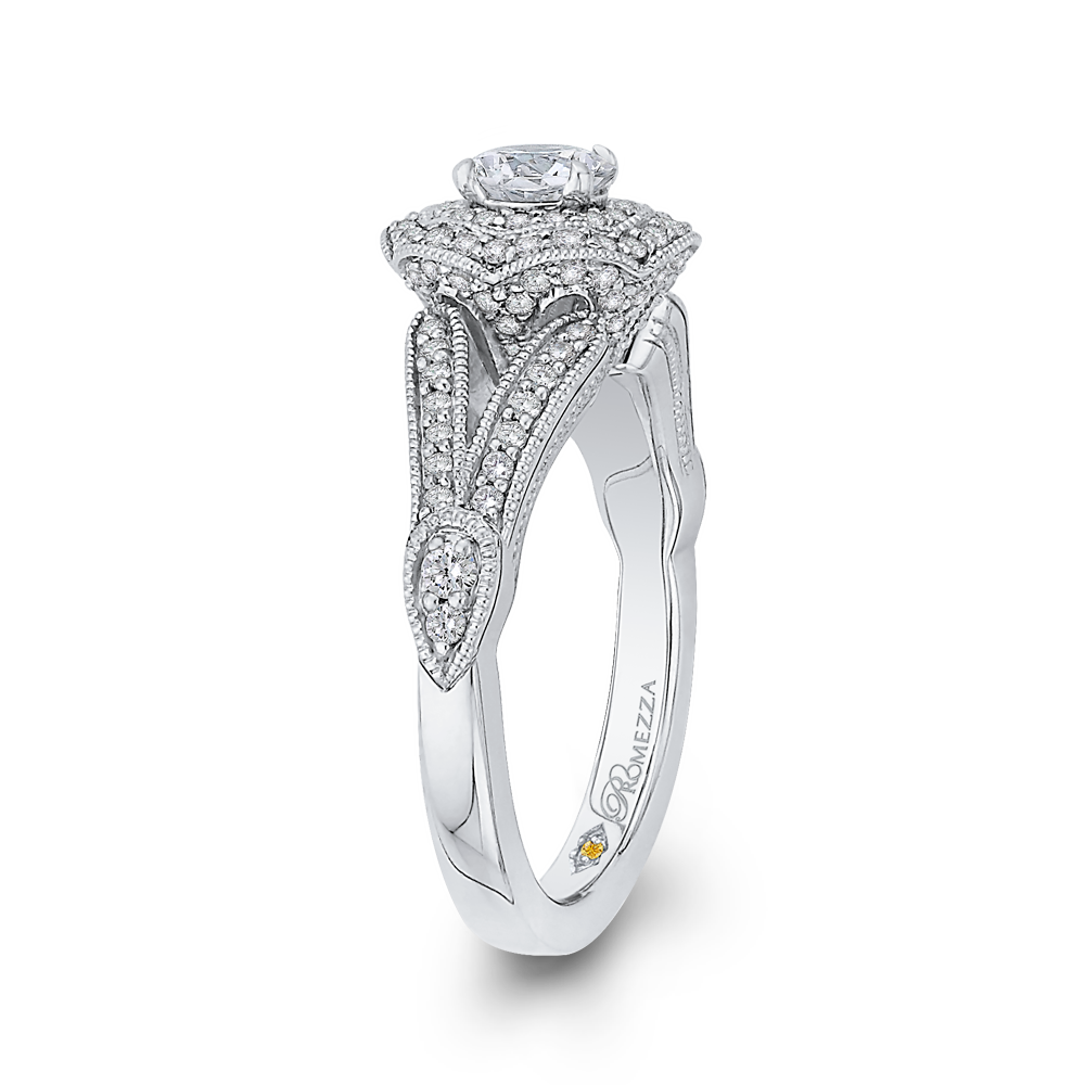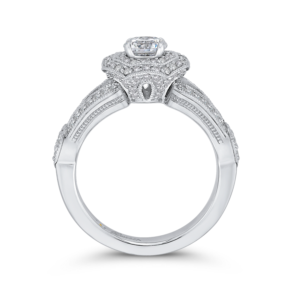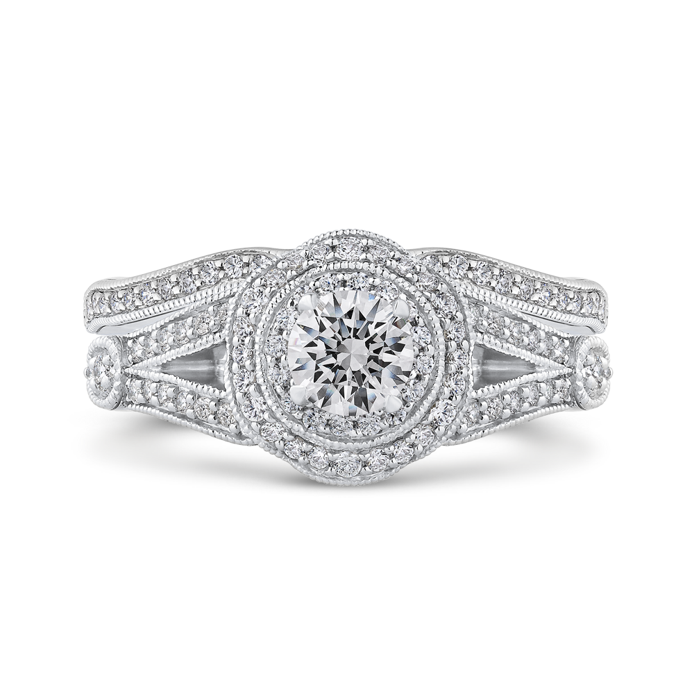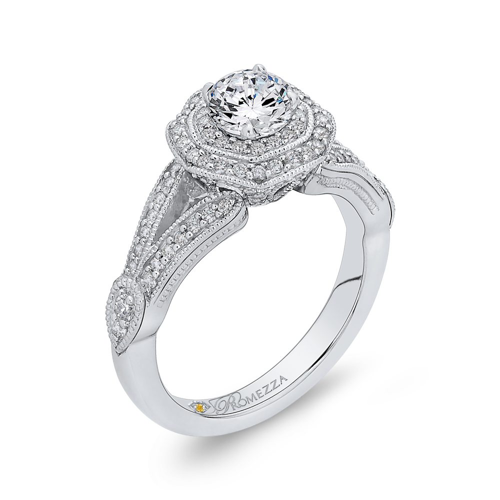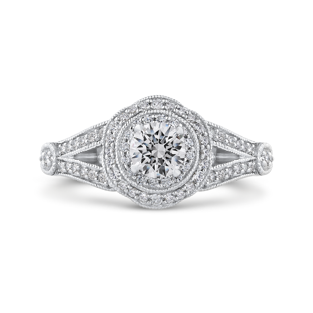 Round Double Halo Diamond Engagement Ring in 14K White Gold