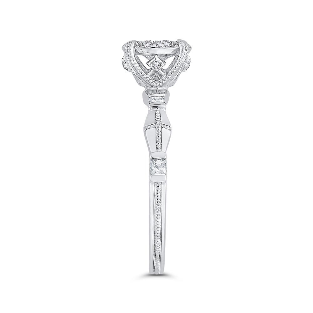 Round & Princess Cut Diamond Engagement Ring in 14K White Gold
