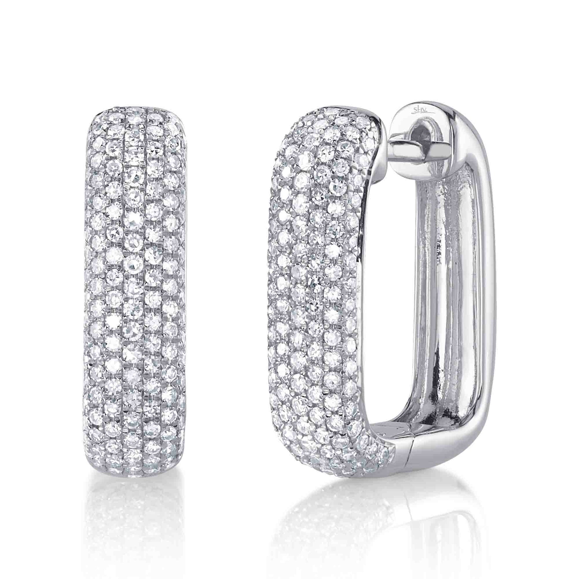 0.59CT 14K W/G DIAMOND PAVE RECTANGLE HOOP EARRING