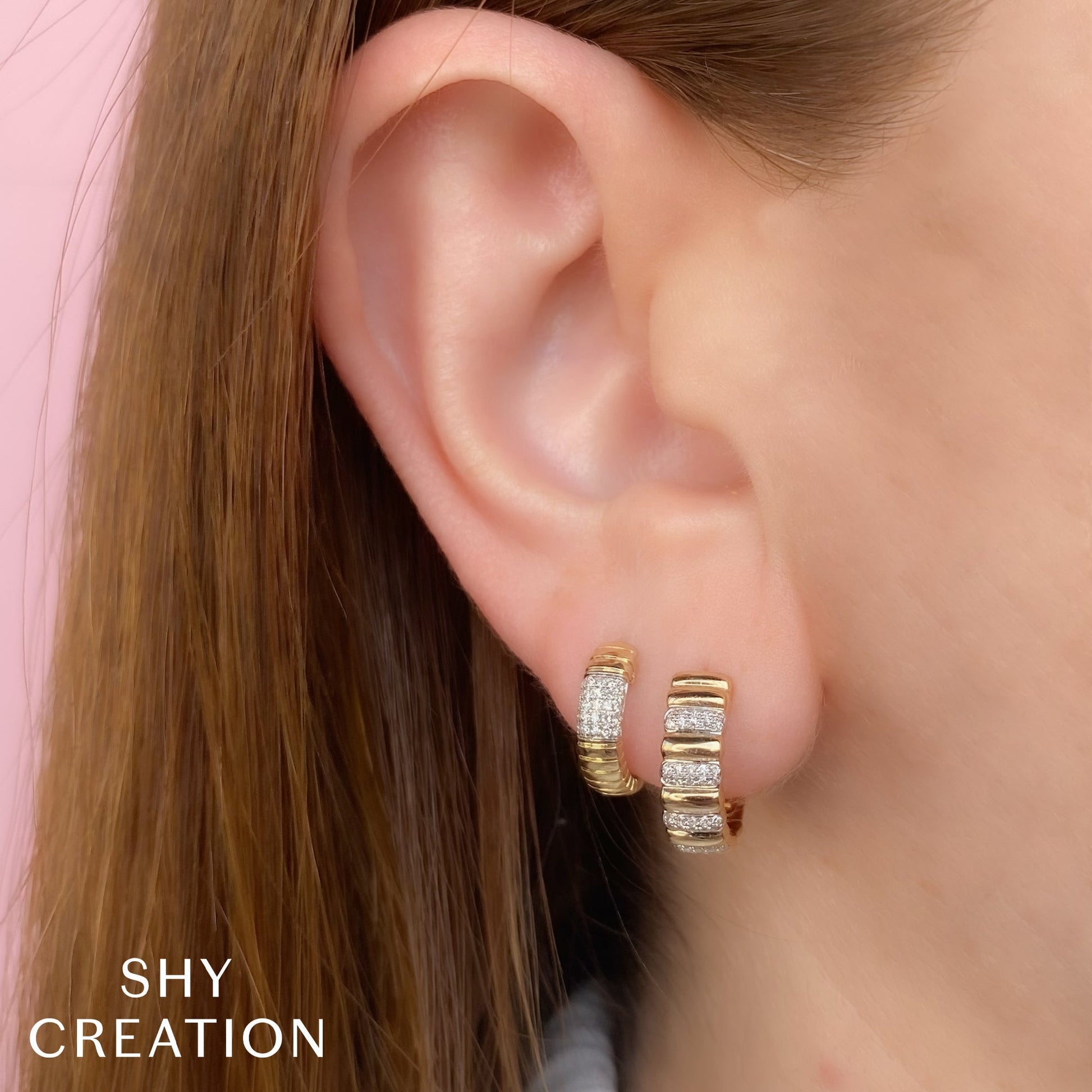 0.11CT 14K Y/G DIAMOND HUGGIE EARRING