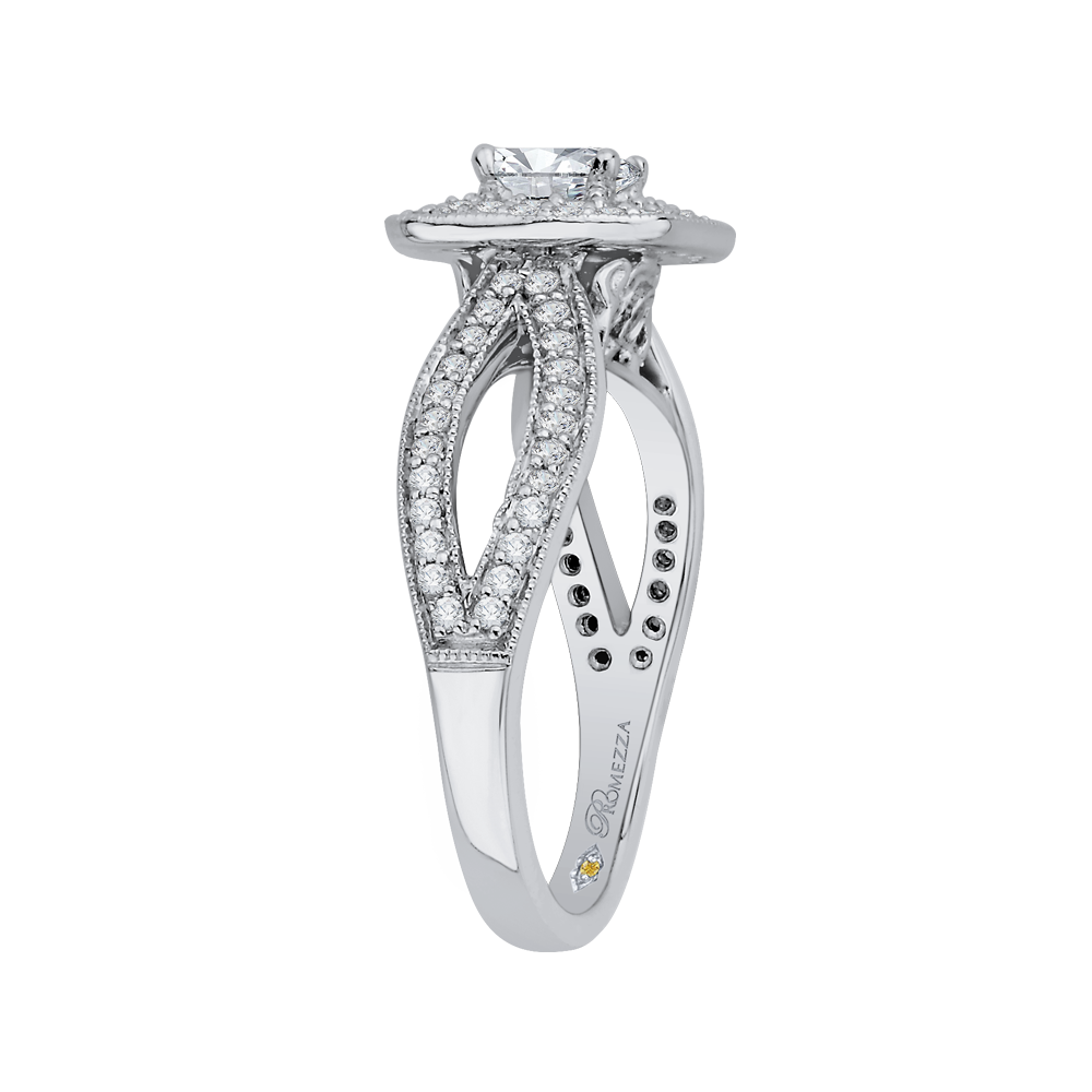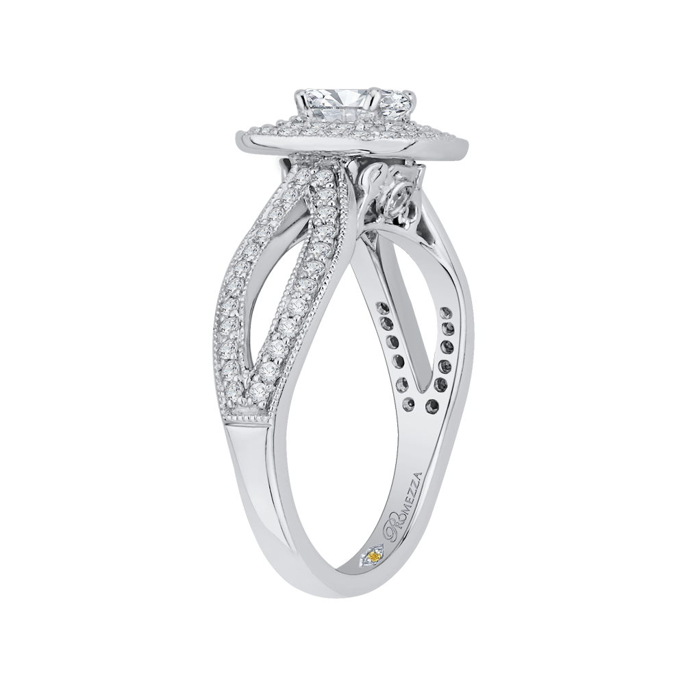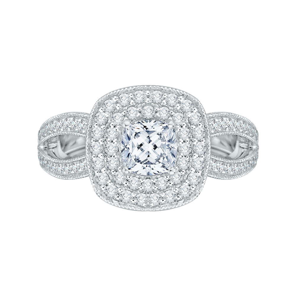 Split Shank Cushion Cut Diamond Double Halo Engagement Ring in 14K White Gold