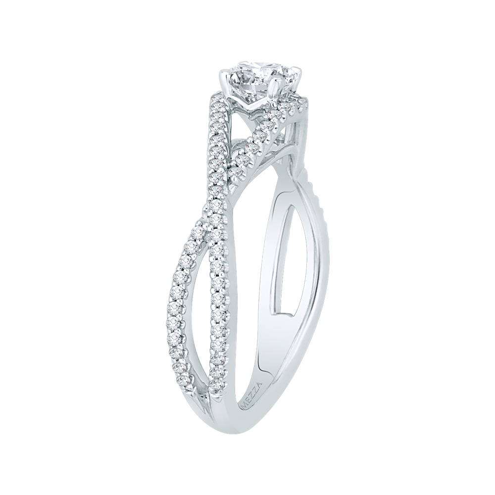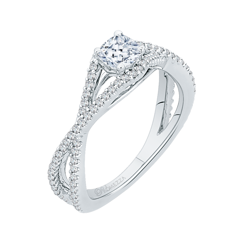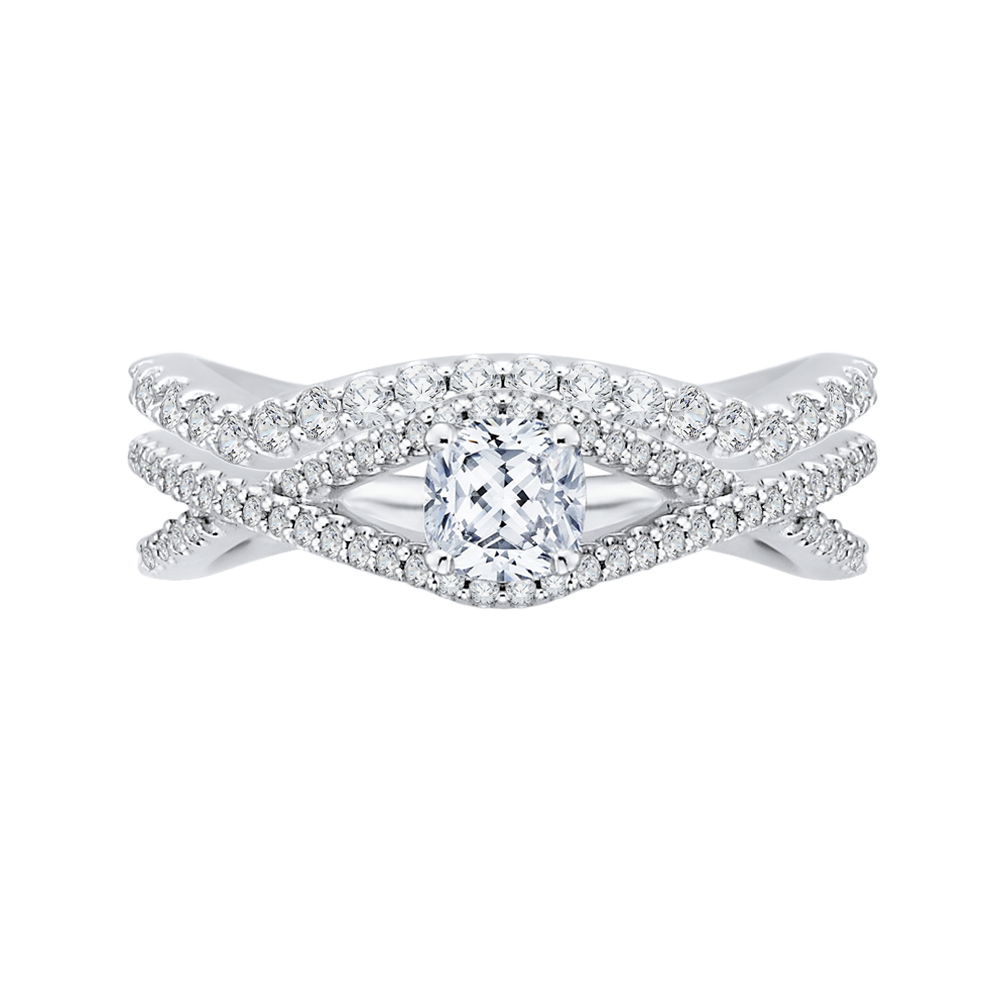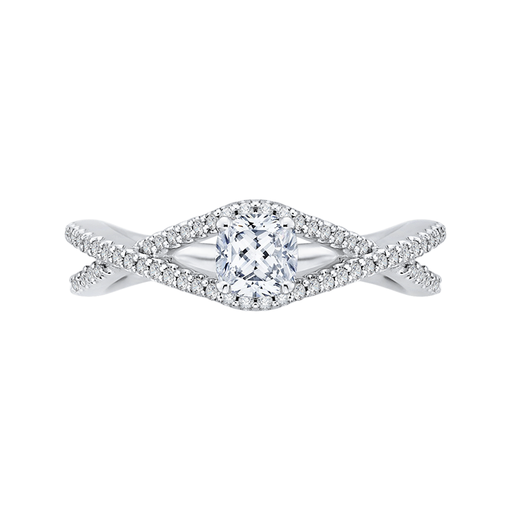 Split Shank Cushion Cut Diamond Engagement Ring in 14K White Gold