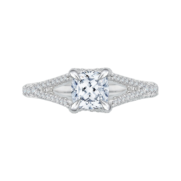 Split Shank Cushion Cut Diamond Engagement Ring In 14K White Gold (Semi-Mount)