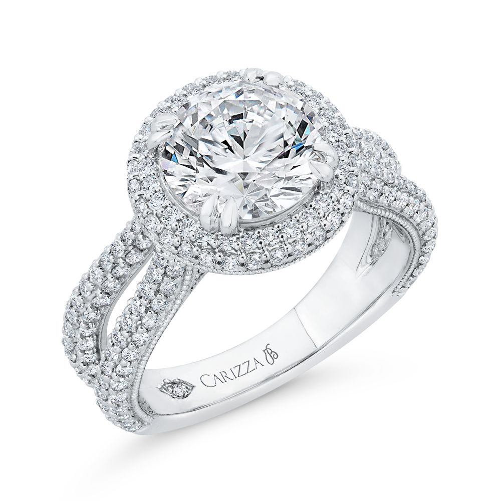 Split Shank Diamond Double Halo Engagement Ring in 14K White Gold (Semi-Mount)