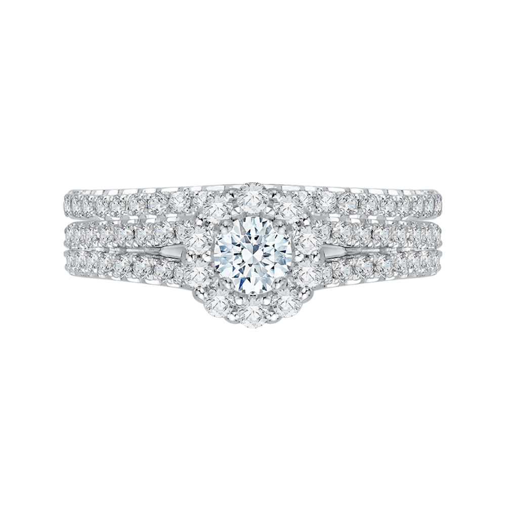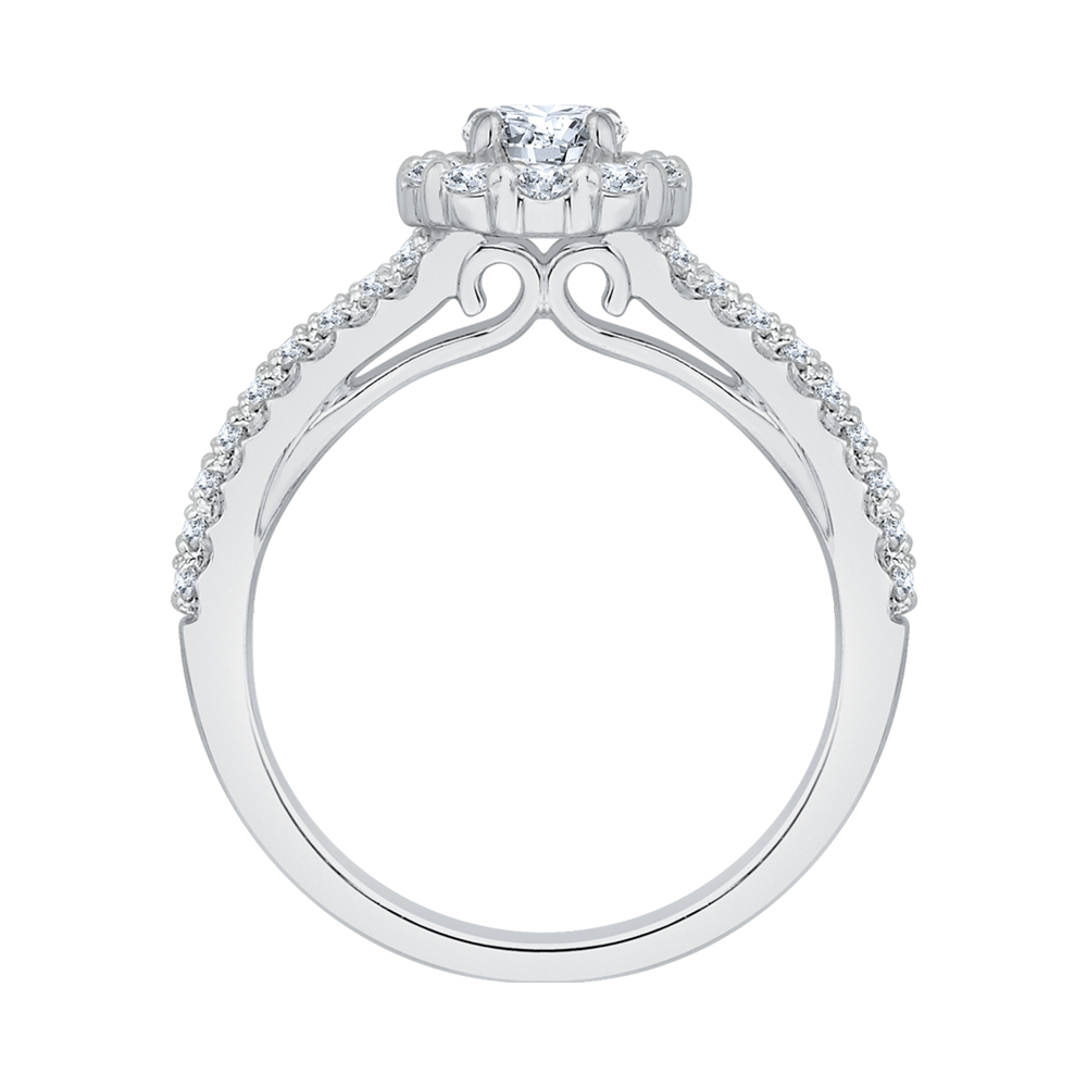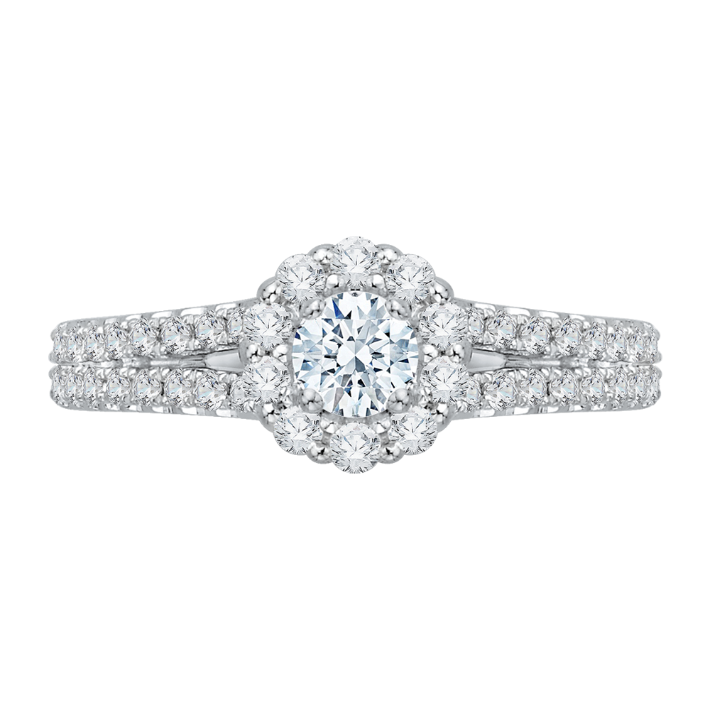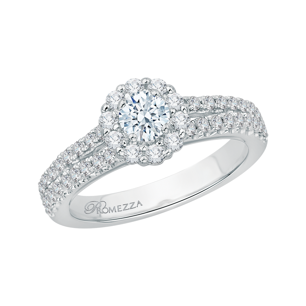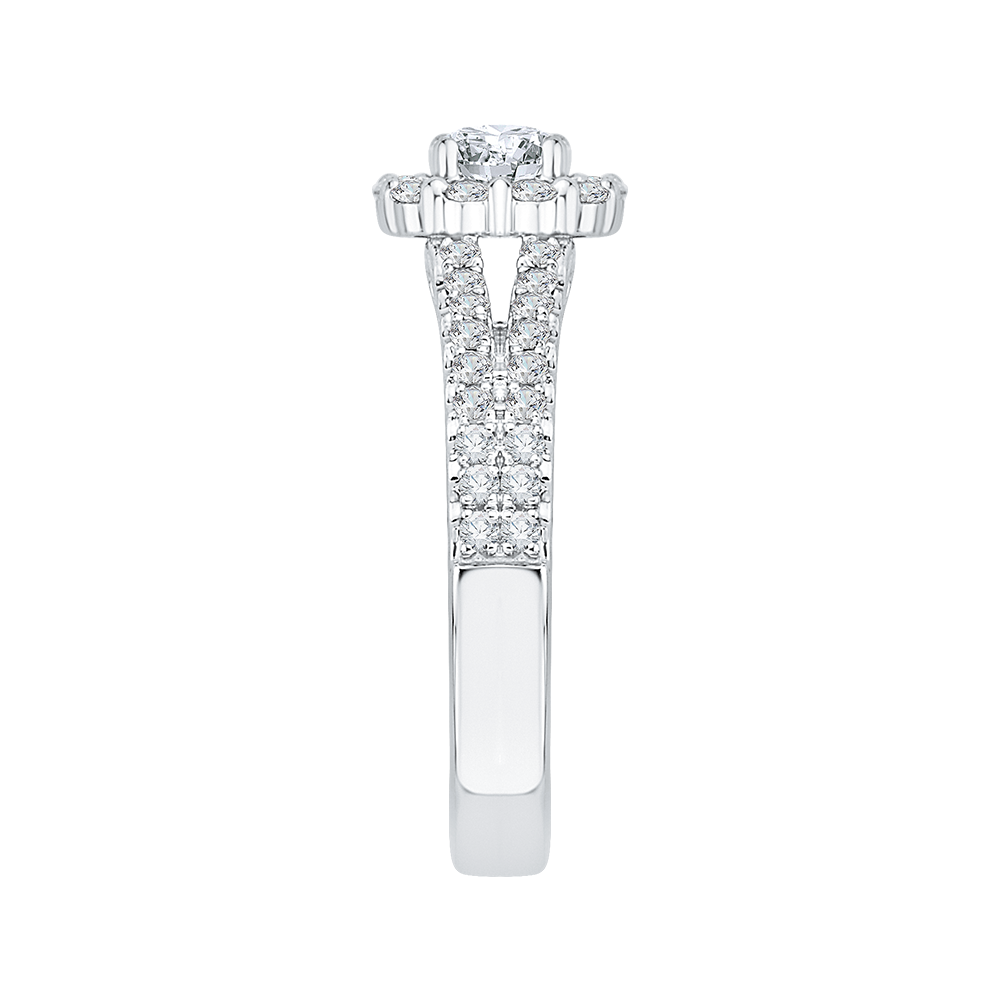 Split Shank Diamond Halo Engagement Ring in 14K White Gold