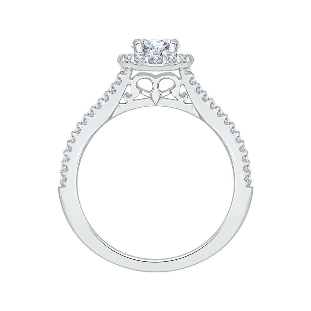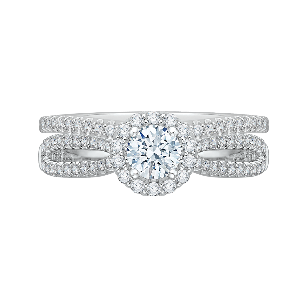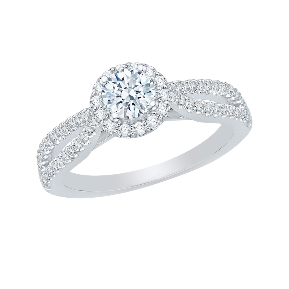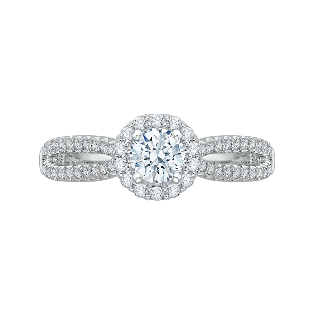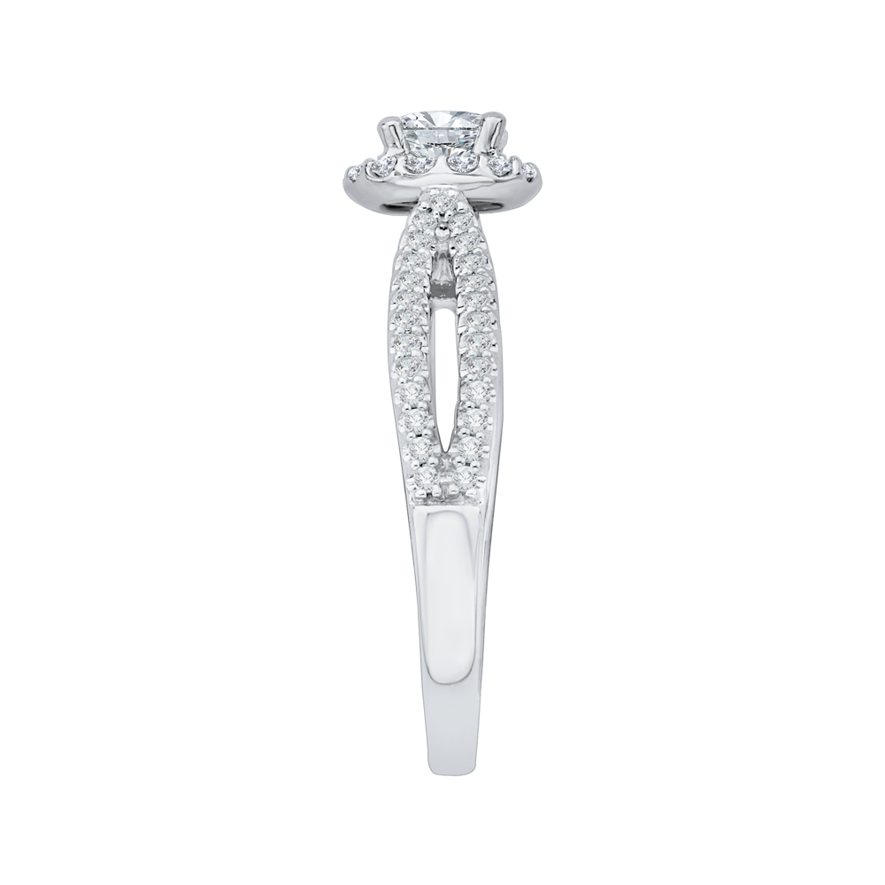 Split Shank Diamond Halo Engagement Ring in 14K White Gold