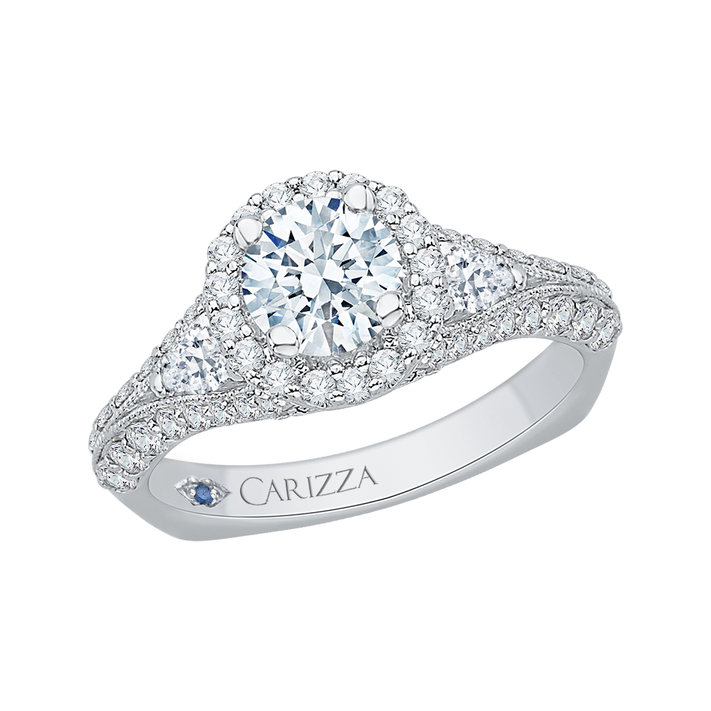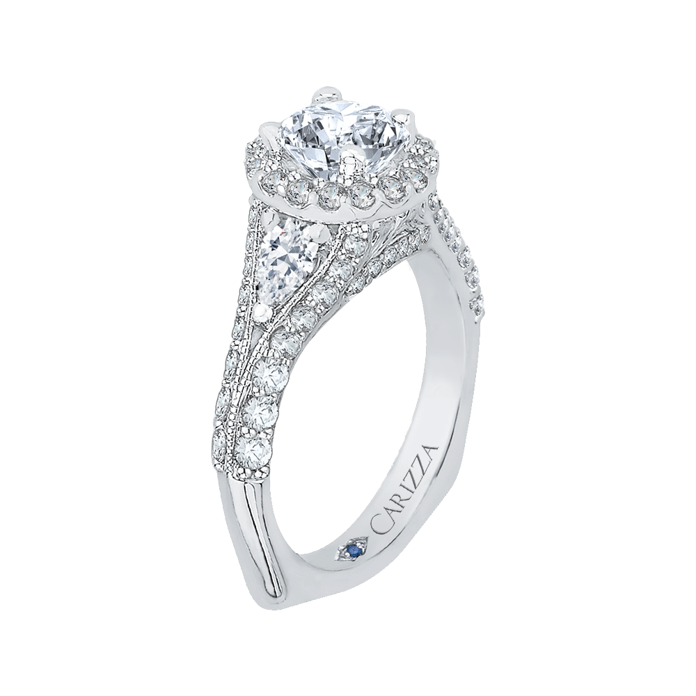 Split Shank Diamond Halo Engagement Ring in 14K White Gold (Semi-Mount)