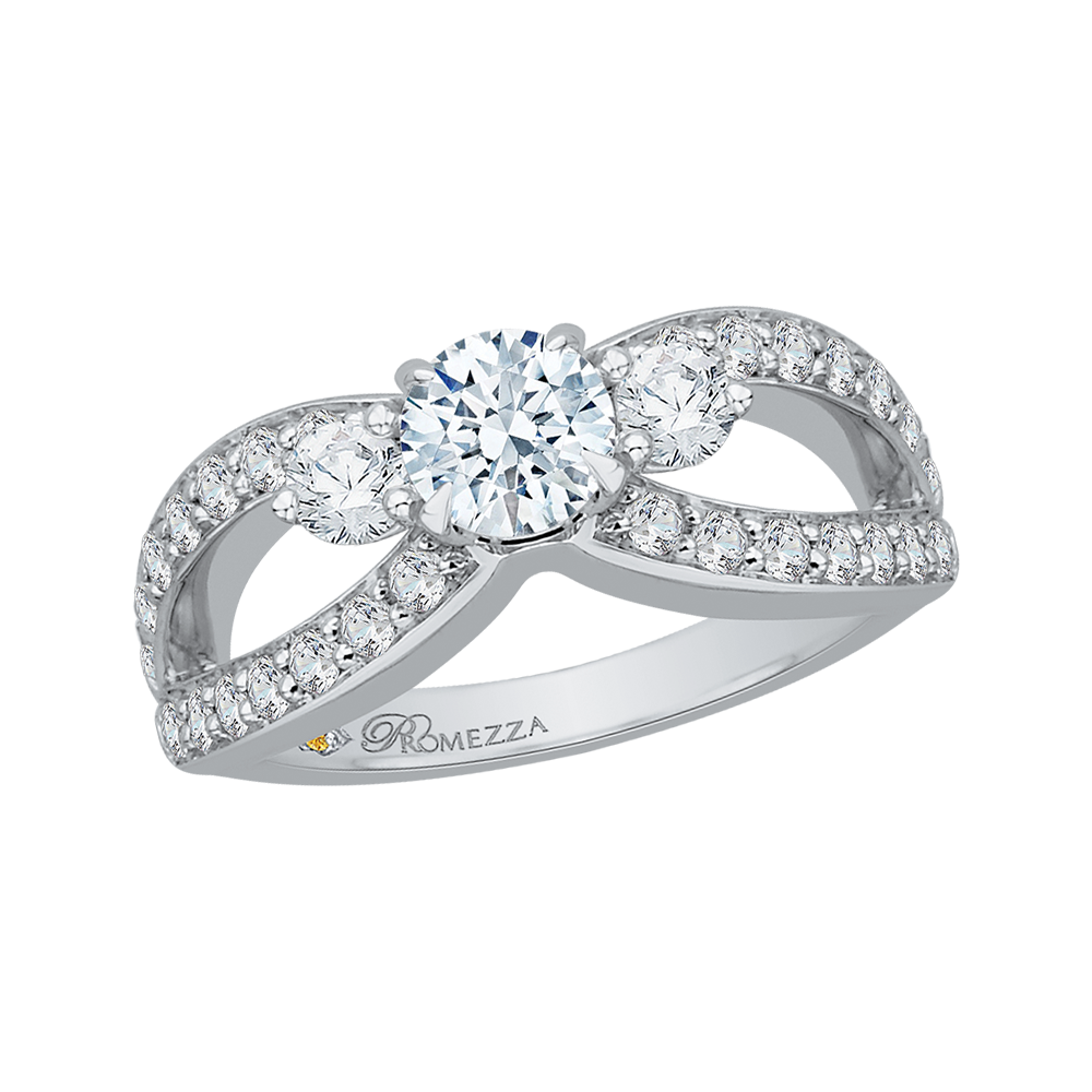 Split Shank Diamond Three-Stone Engagement Ring in 14K White Gold