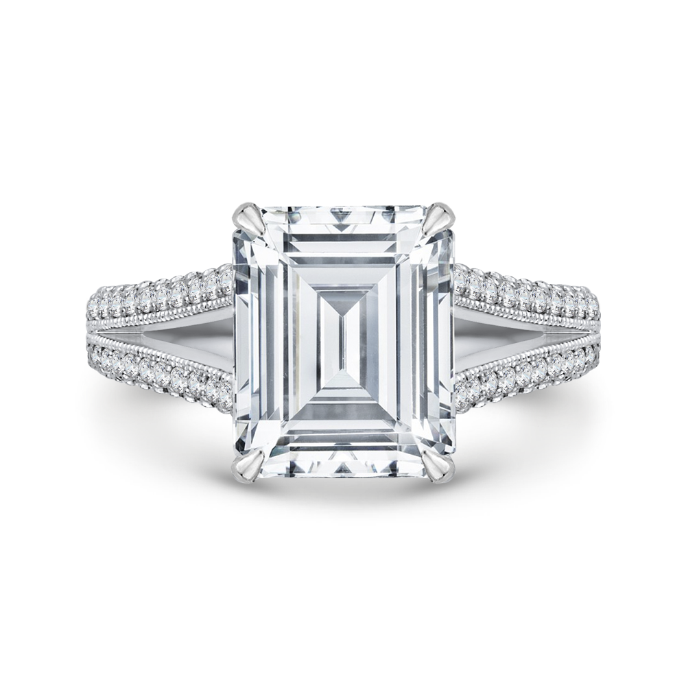 Split Shank Emerald Cut Diamond Bridal Engagement Ring in 18K White Gold (Semi-Mount)