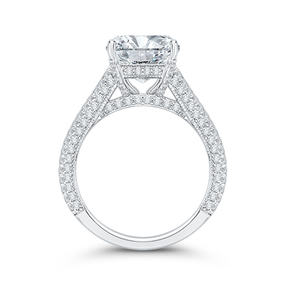 Elegantly crafted in 18K white gold, this stunning bridal engagement ring features a split shank design adorned with dazzling emerald cut diamonds. The semi-mount setting allows you to choose the perfect center stone to complete this timeless and sophisticated piece. Make a statement of everlasting love with this exquisite ring.