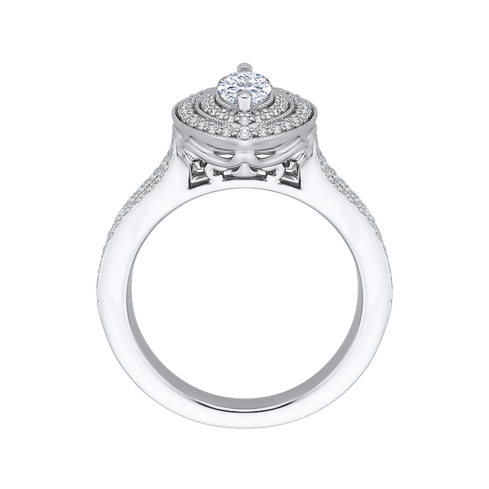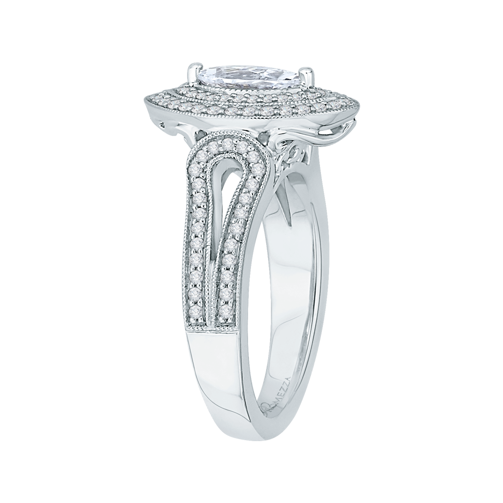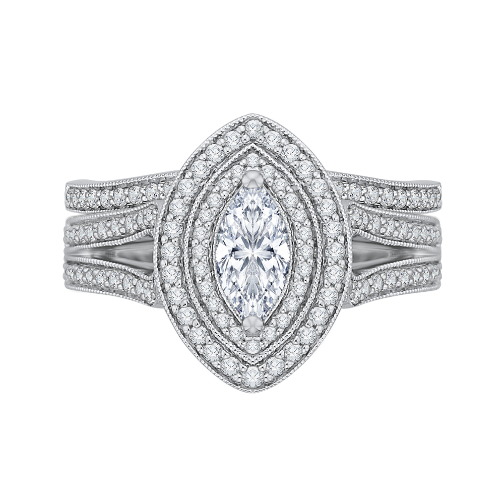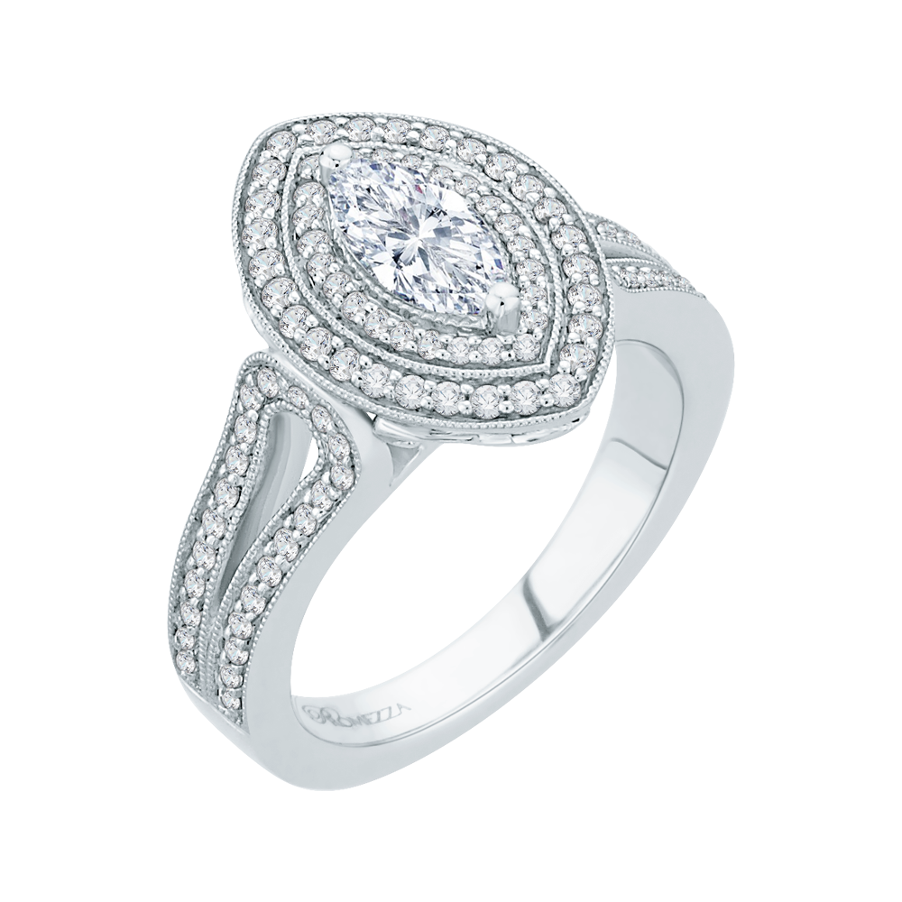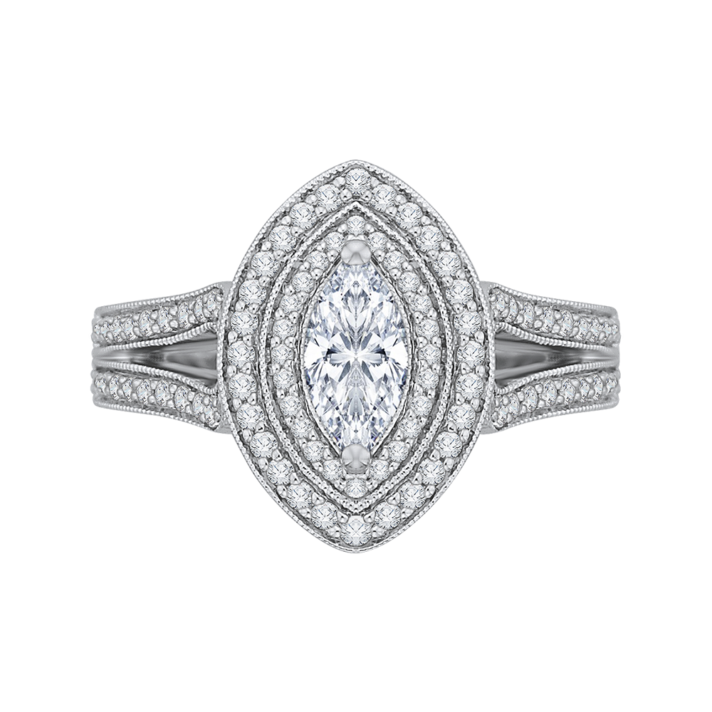 Split Shank Marquise Cut Diamond Double Halo Engagement Ring in 14K White Gold