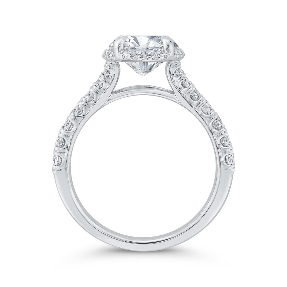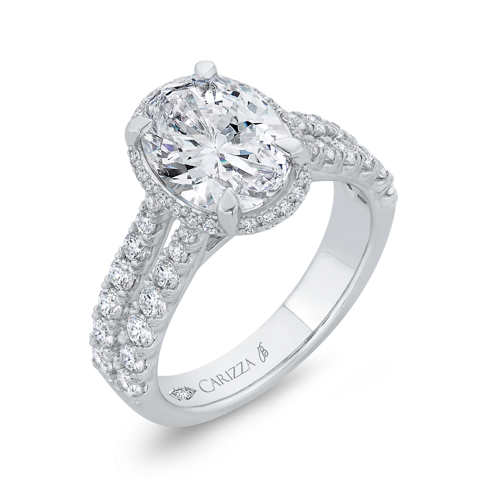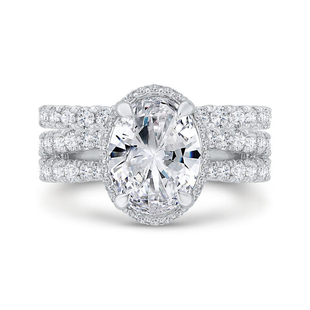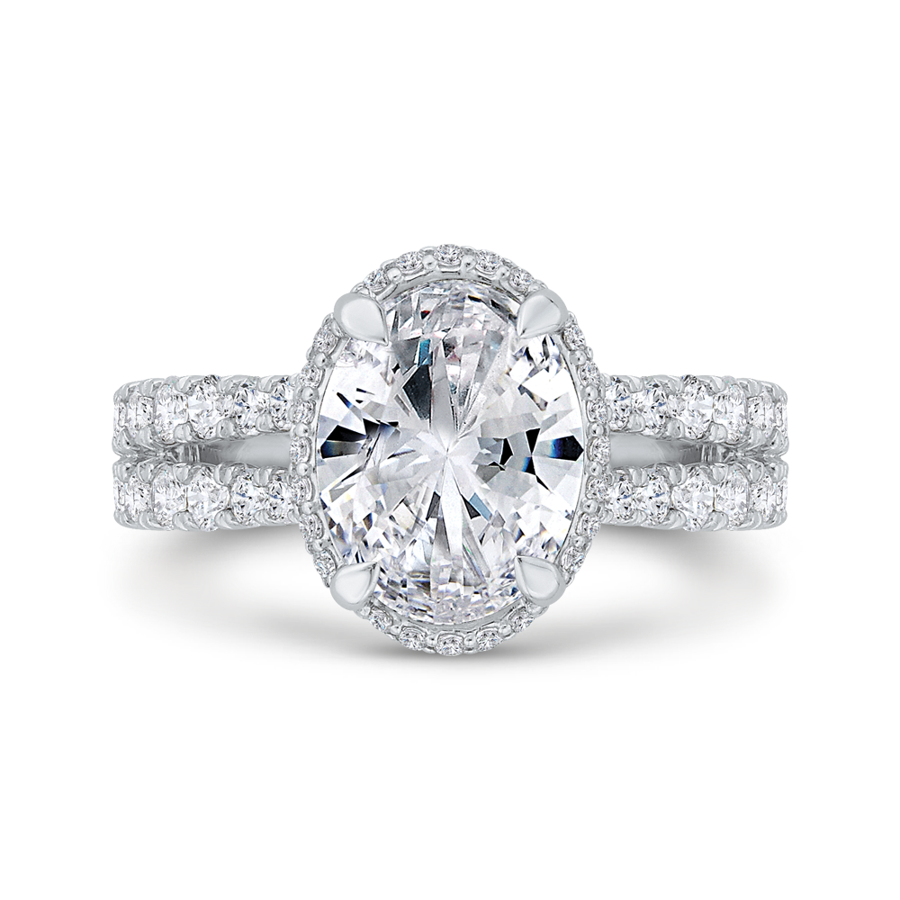 Split Shank Oval Cut Diamond Halo Engagement Ring in 18K White Gold (Semi-Mount)