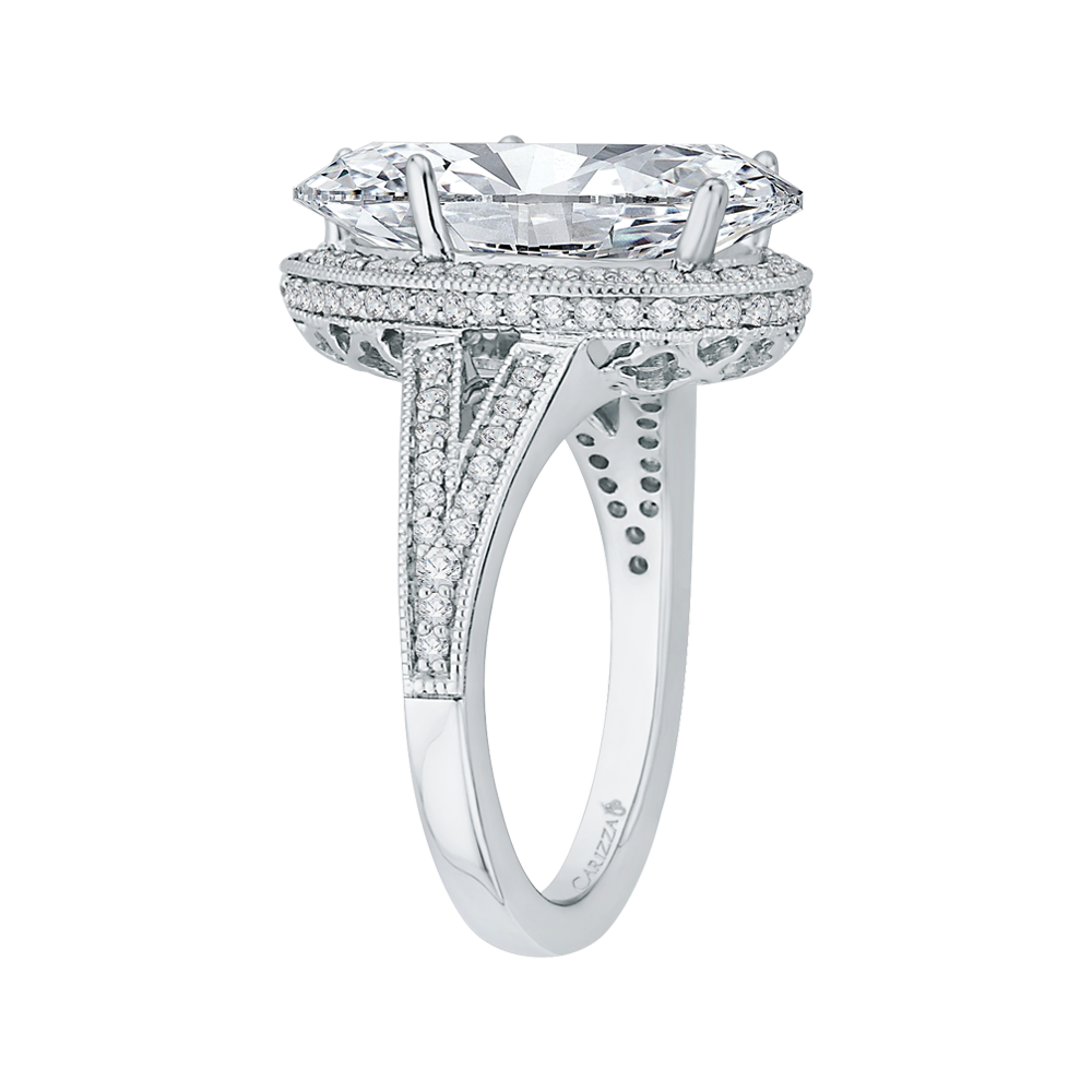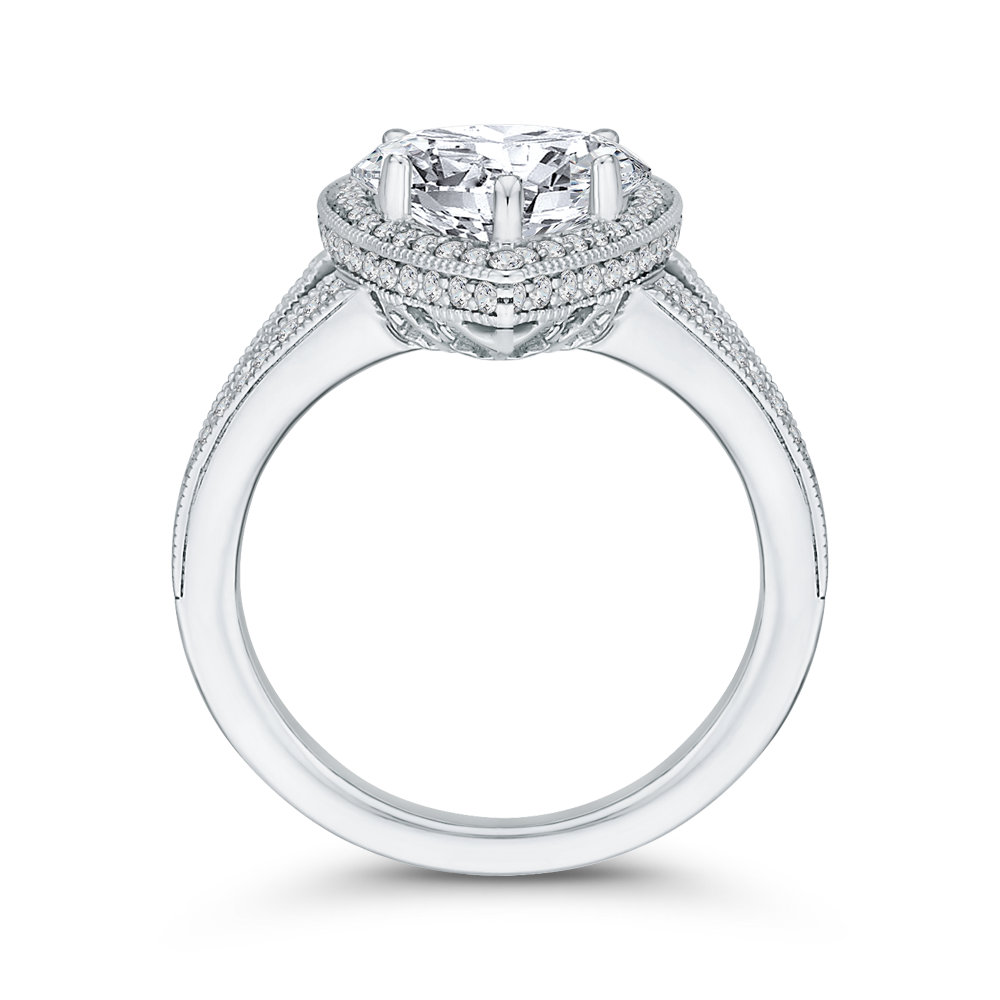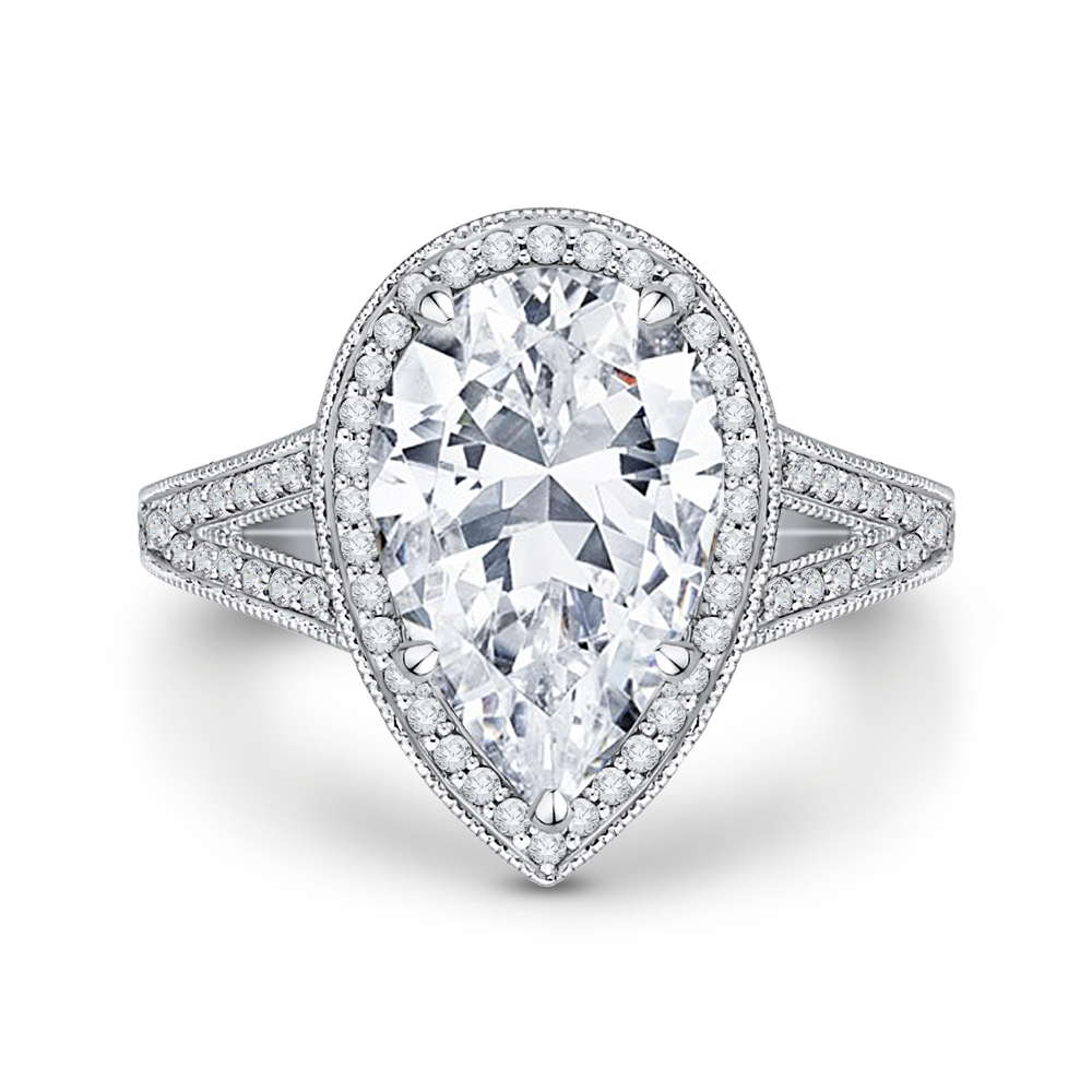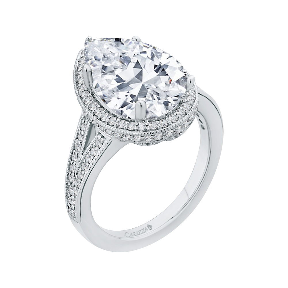 Split Shank Pear Cut Diamond Halo Engagement Ring in 18K White Gold (Semi-Mount)