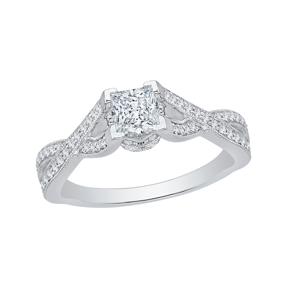 Split Shank Princess Cut Diamond Engagement Ring in 14K White Gold