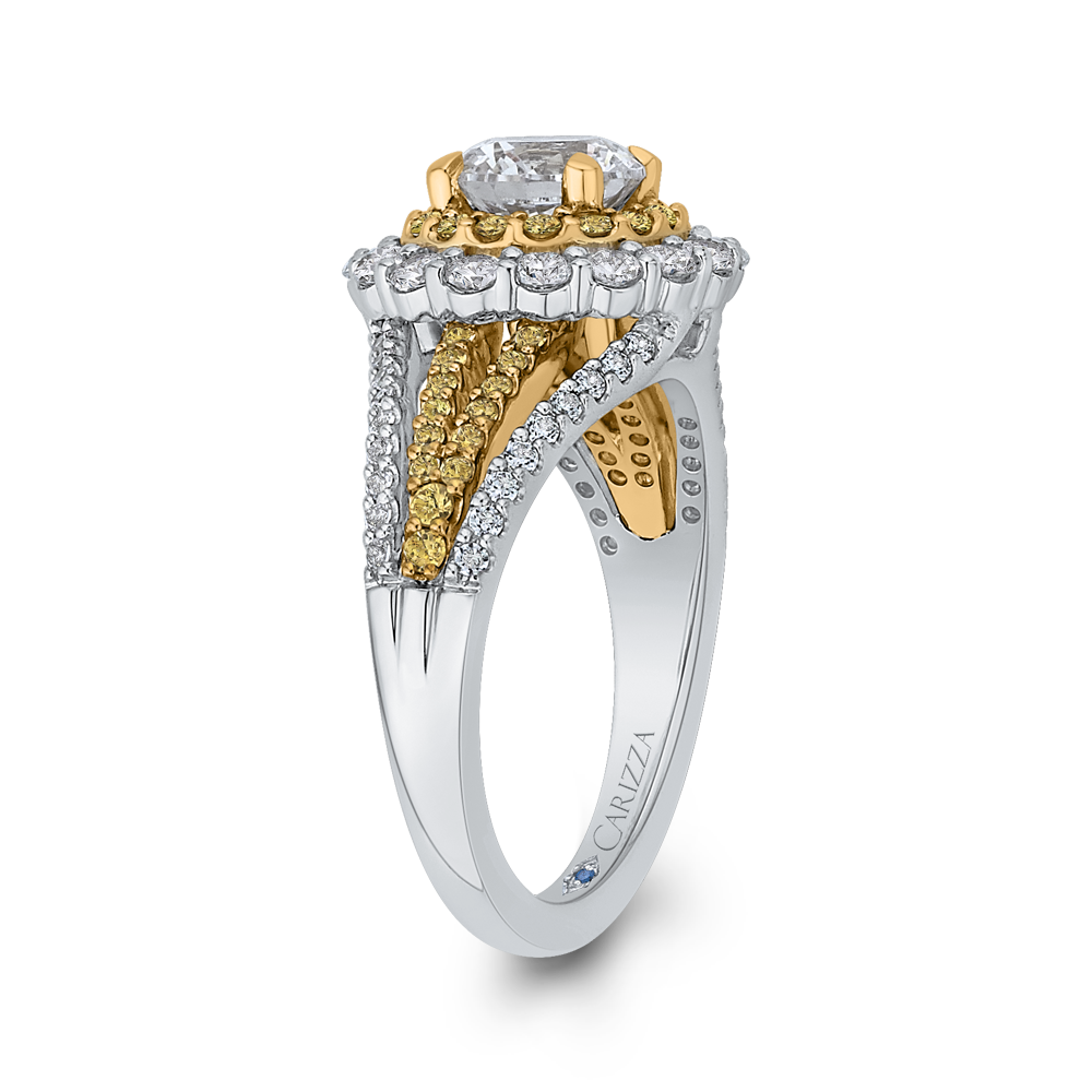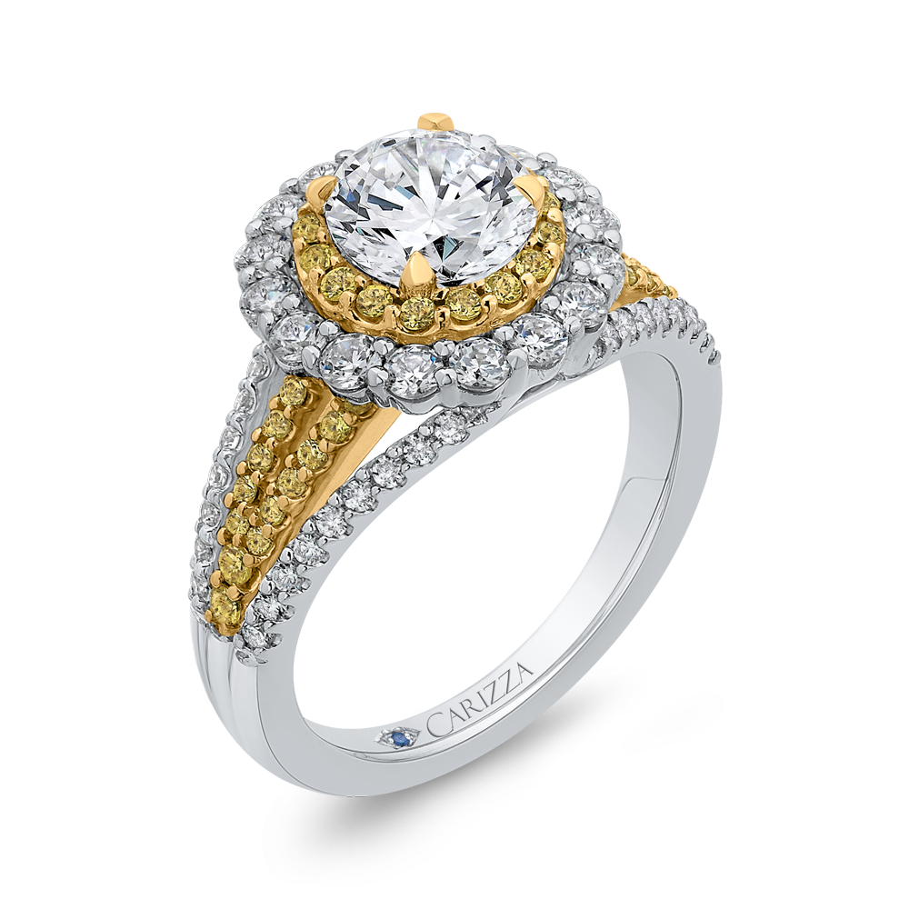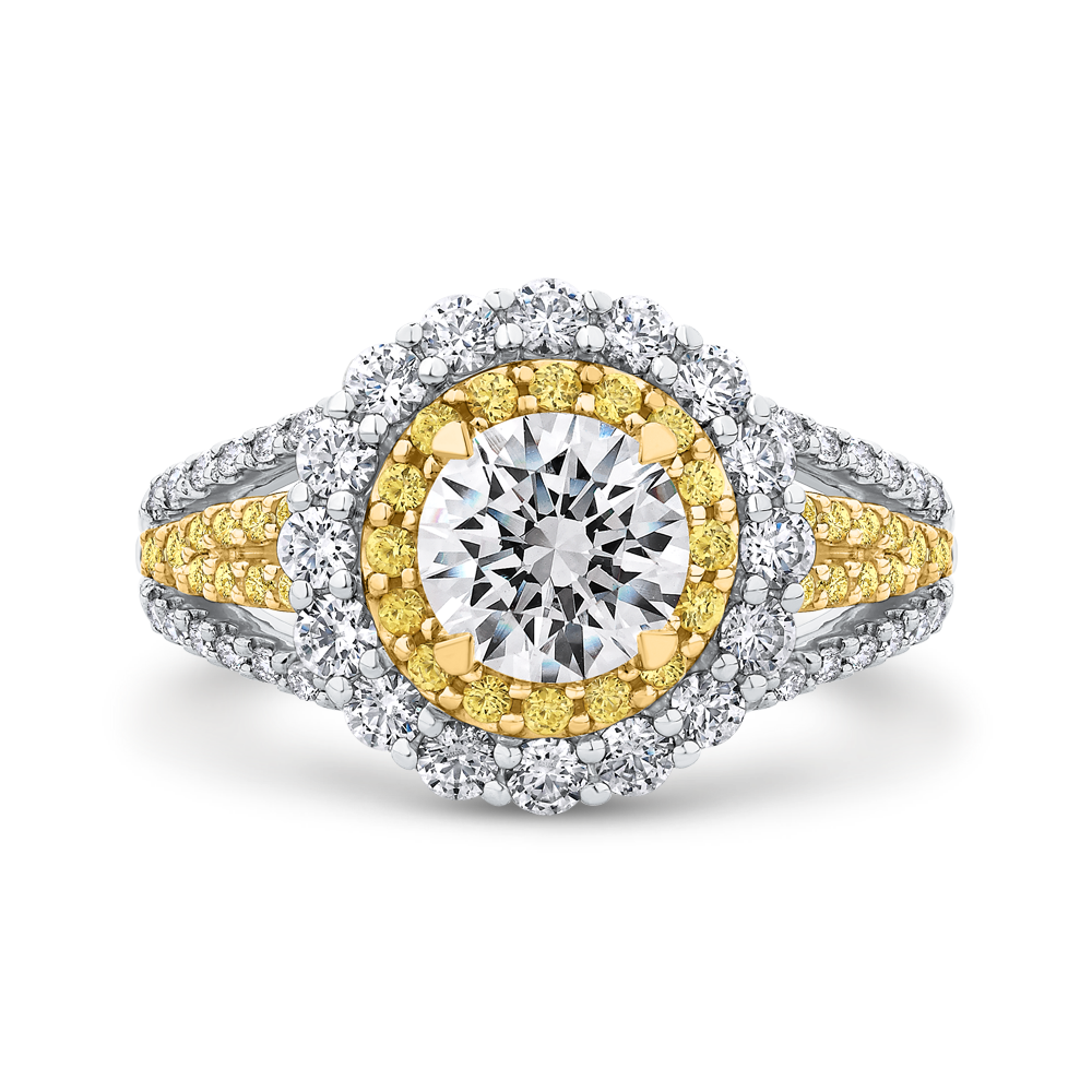 Split Shank Round Diamond Double Halo Engagement Ring in 14K Two Tone Gold (Semi-Mount)