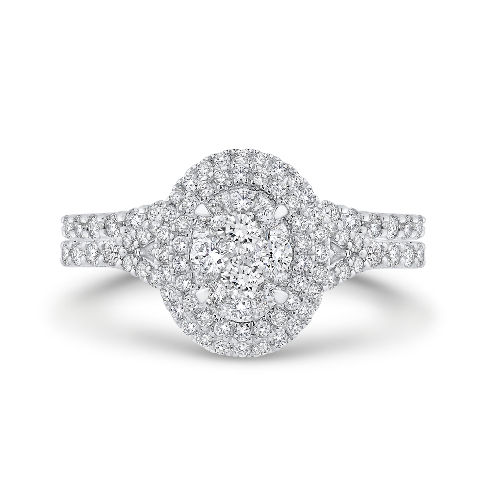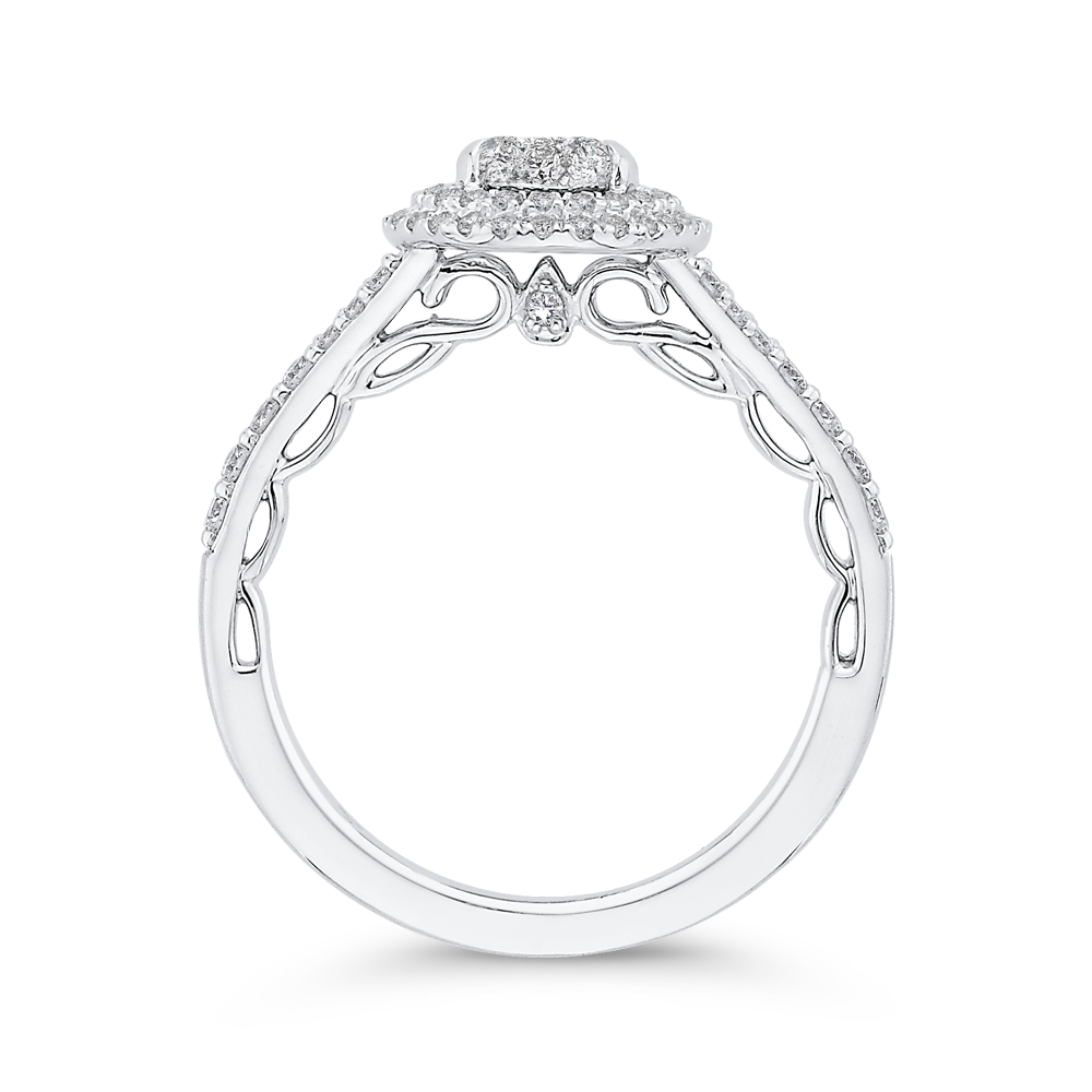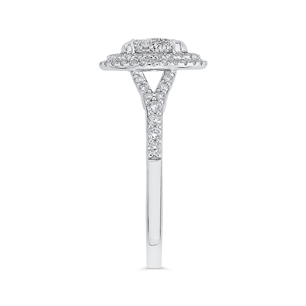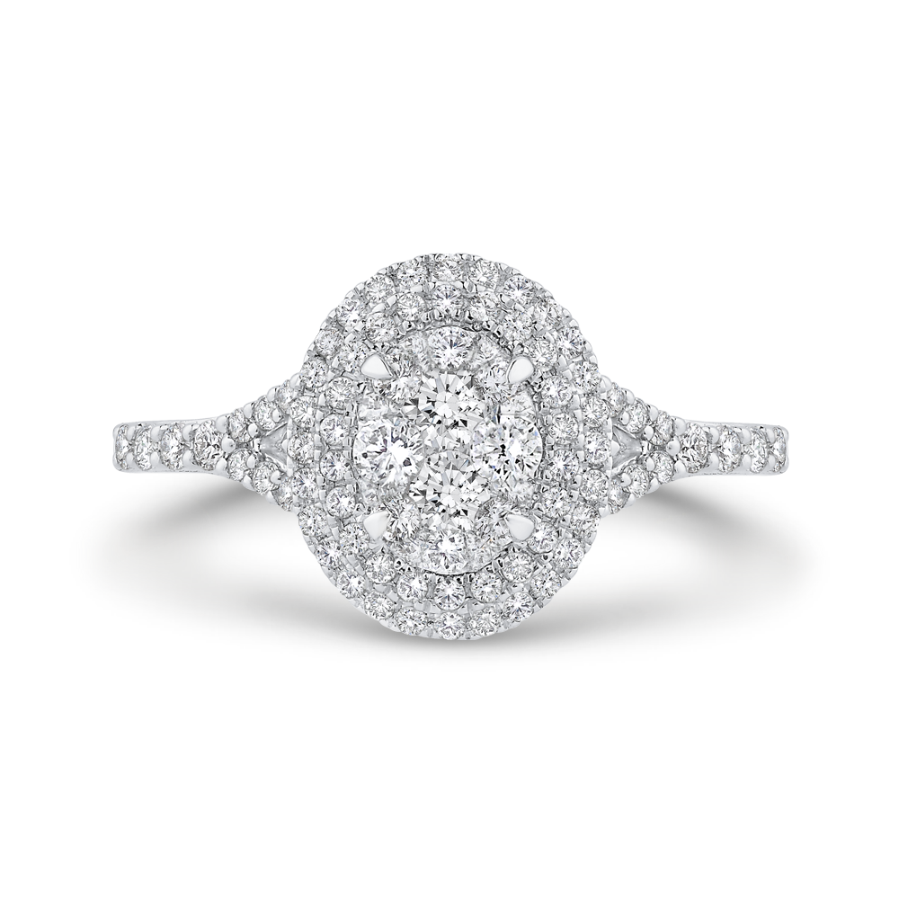 Split Shank Round Diamond Double Halo Engagement Ring in 14K White Gold