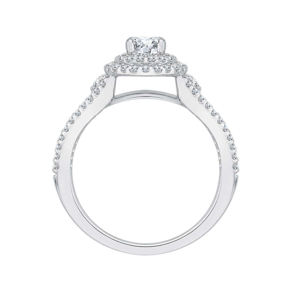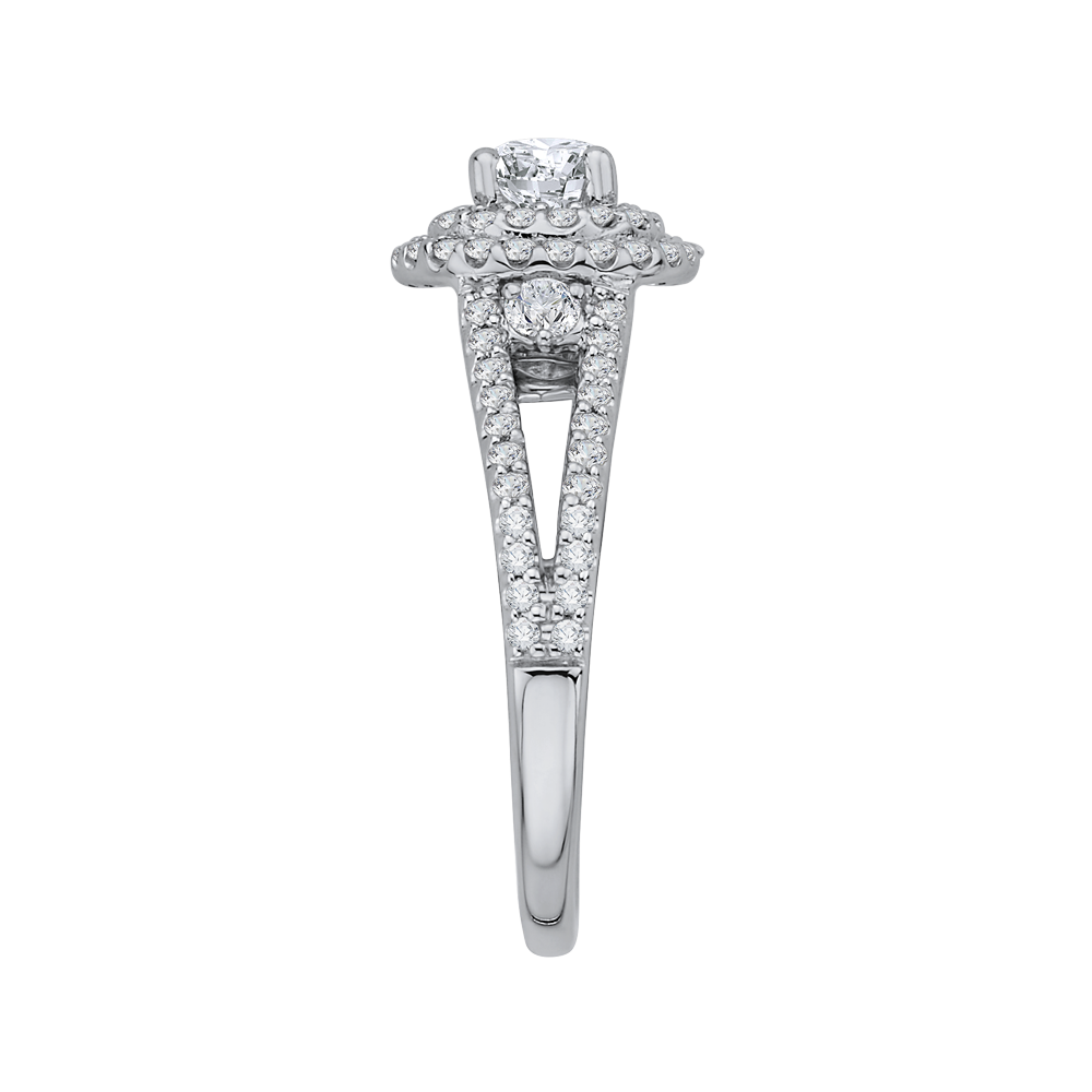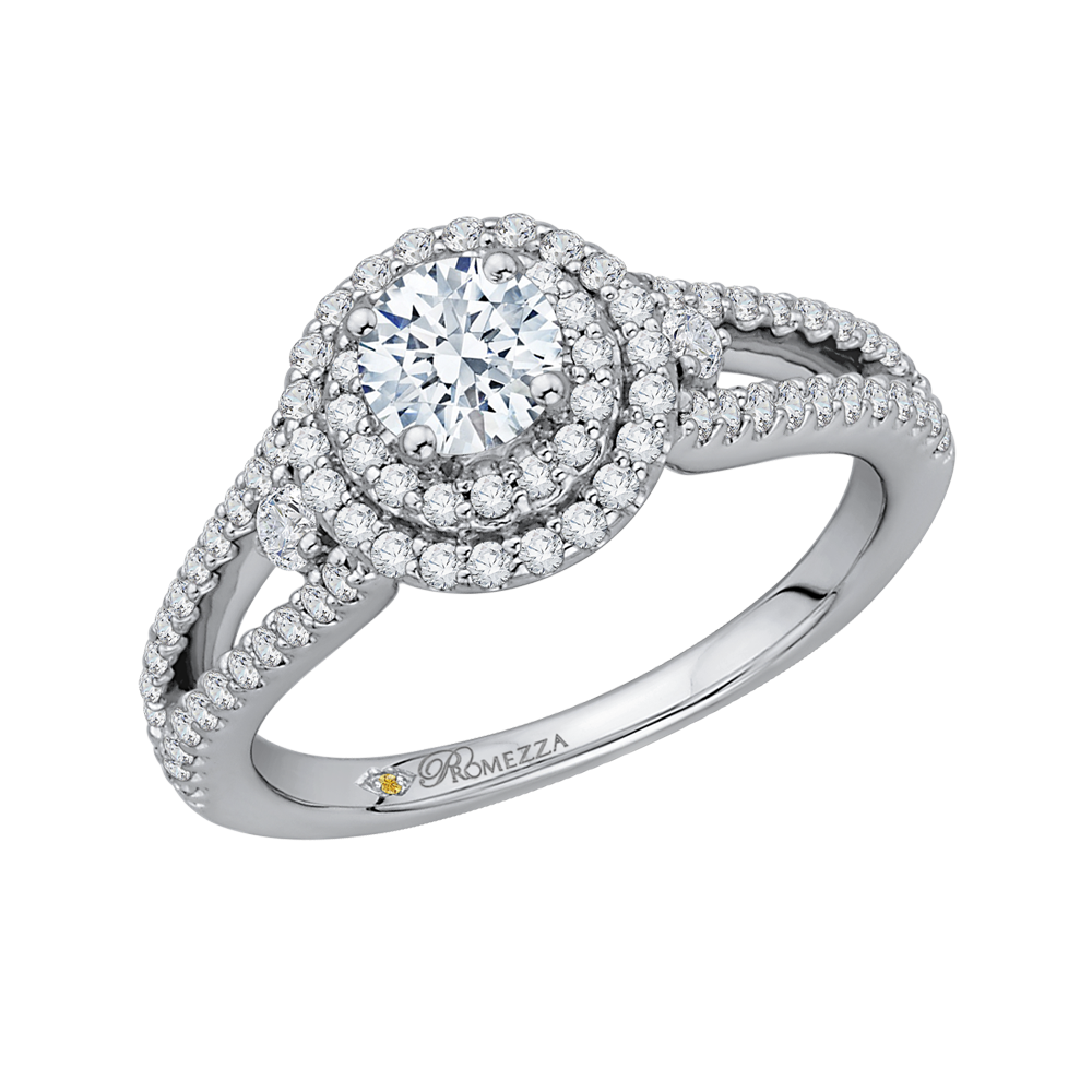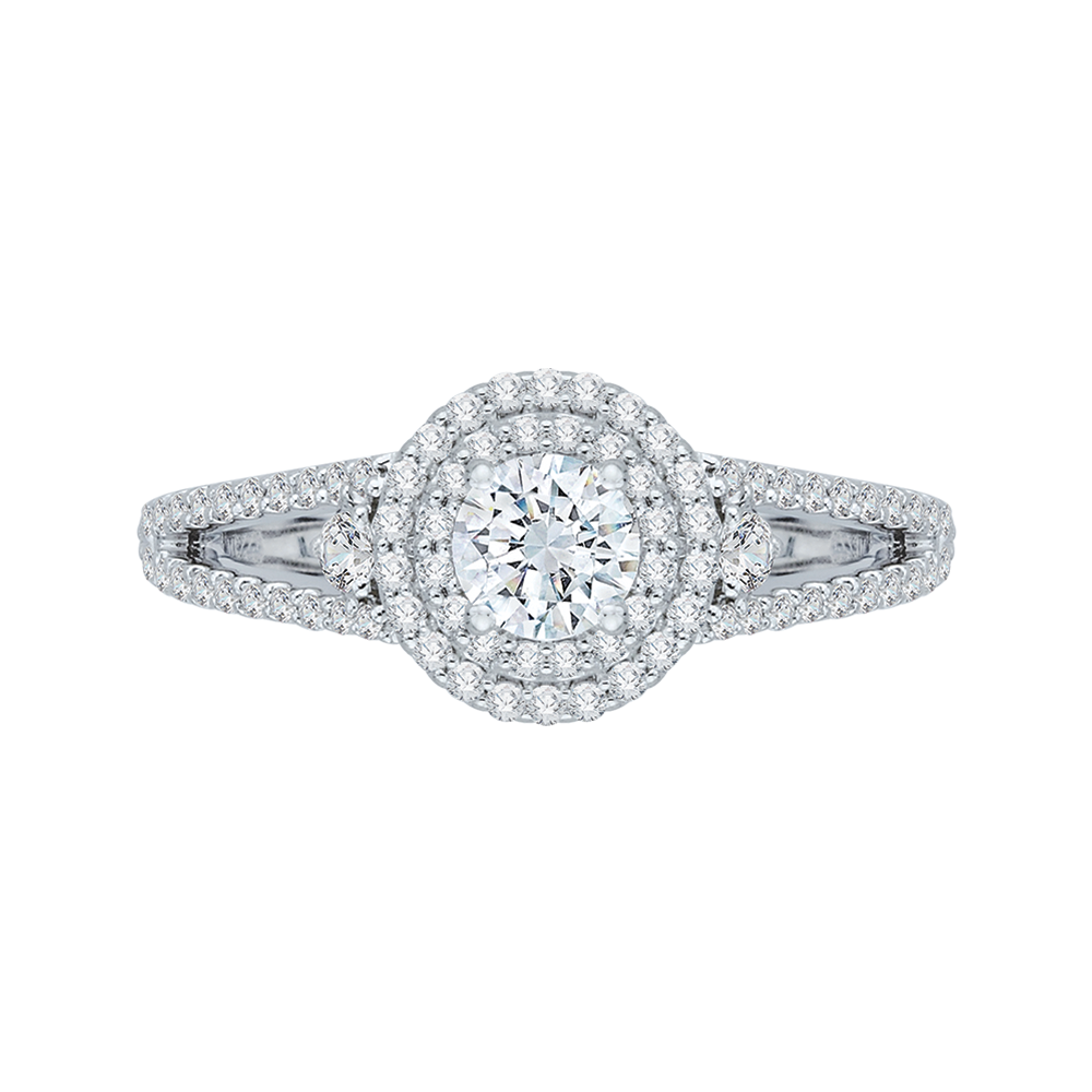 Split Shank Round Diamond Double Halo Engagement Ring in 14K White Gold