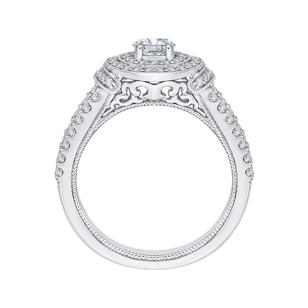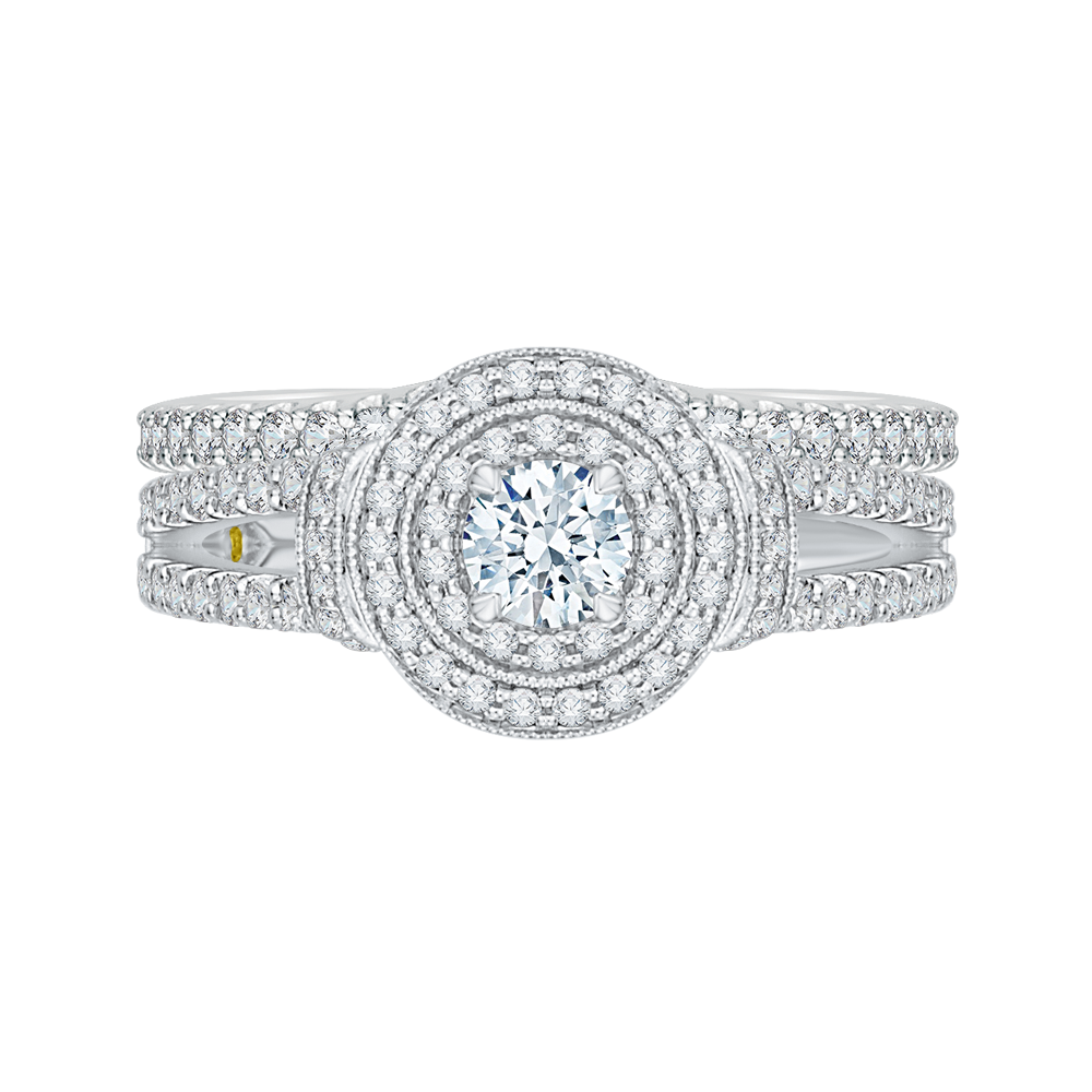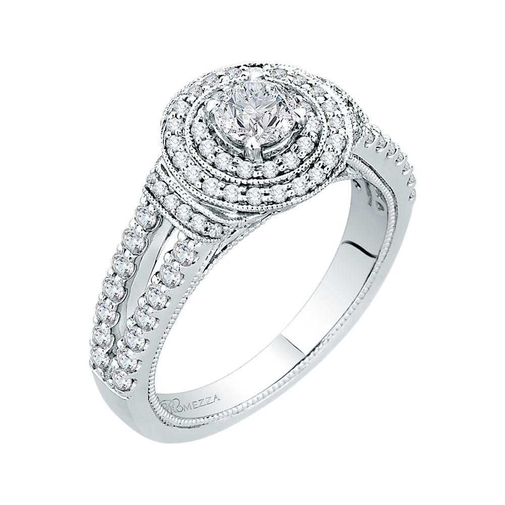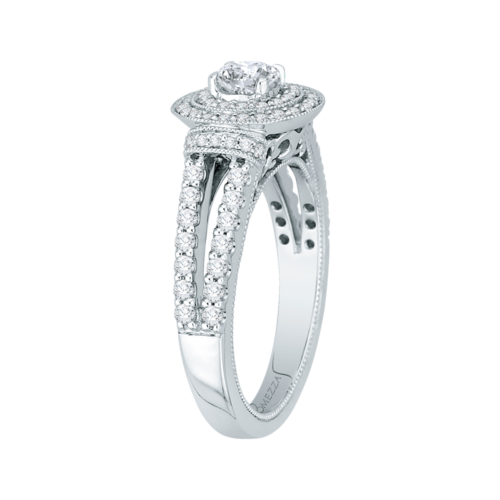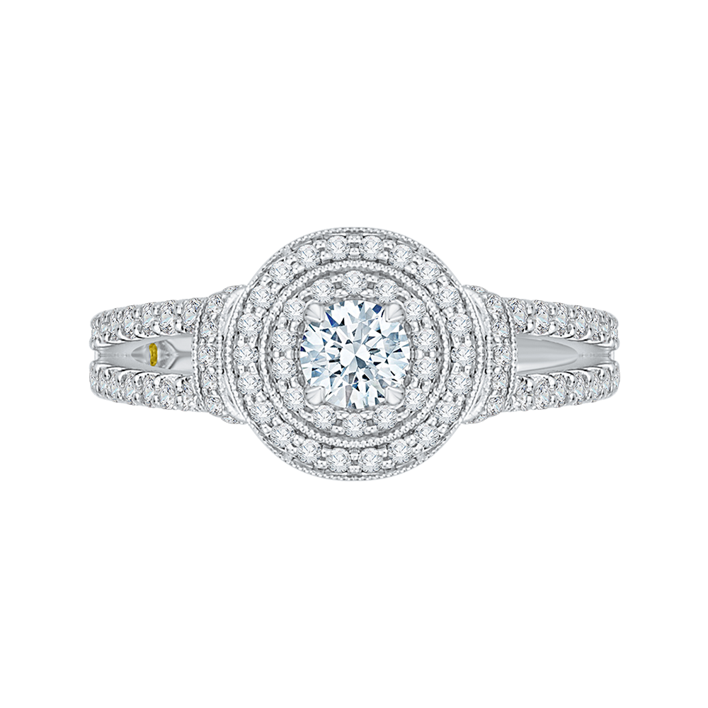 Split Shank Round Diamond Double Halo Engagement Ring in 14K White Gold