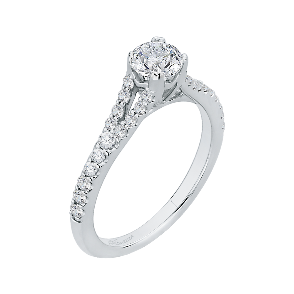 Split Shank Round Diamond Engagement Ring in 14K White Gold