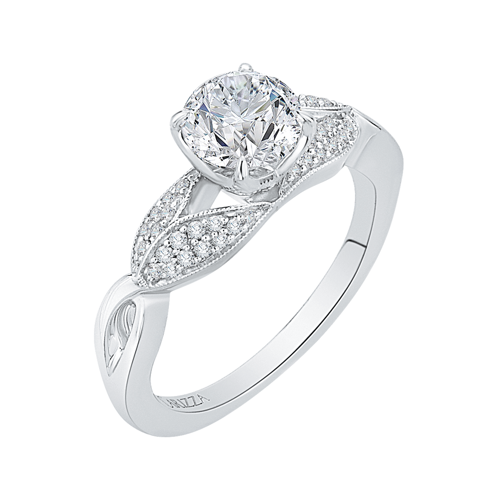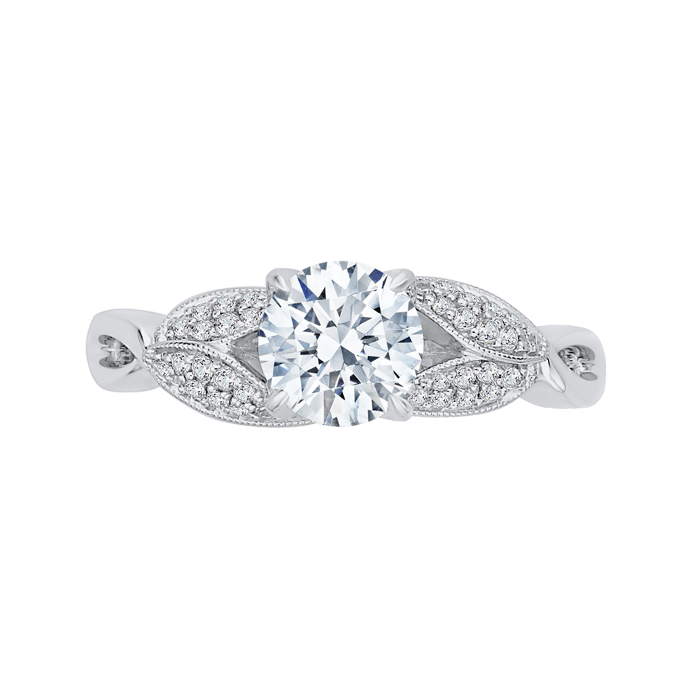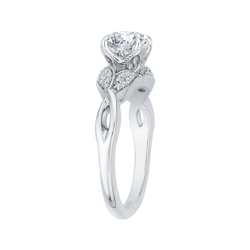 Split Shank Round Diamond Floral Engagement Ring in 14K White Gold (Semi-Mount)