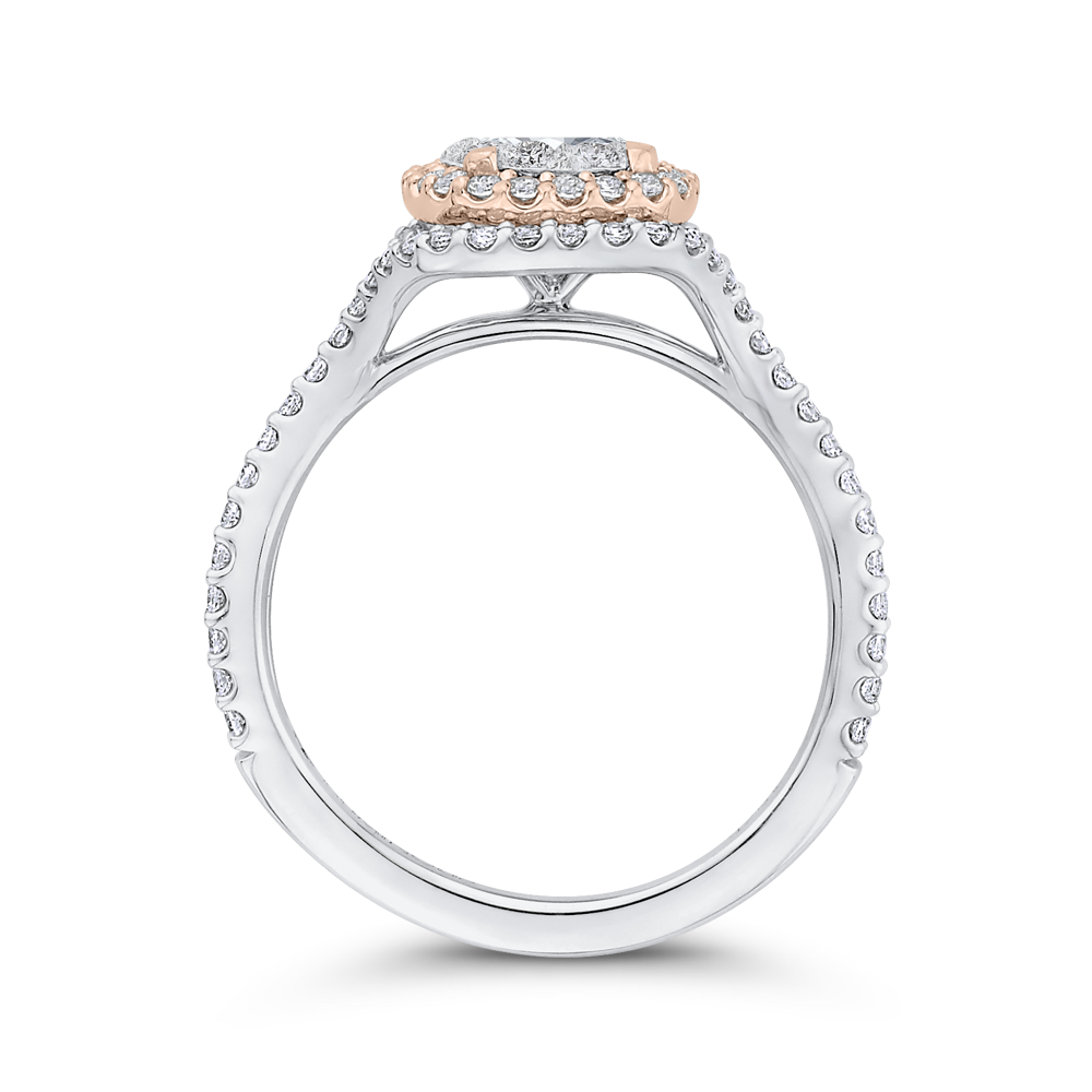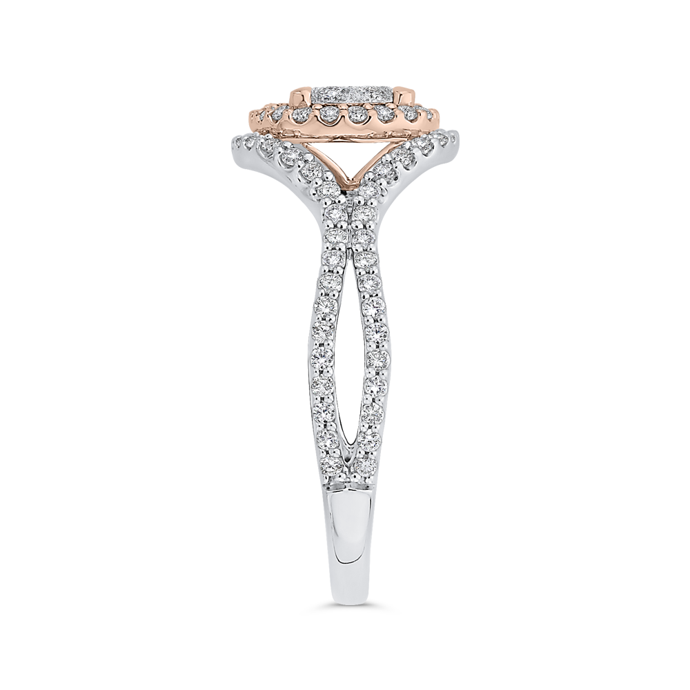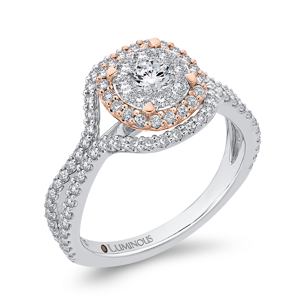 Split Shank Round Diamond Halo Engagement Ring in 14K Two Tone Gold