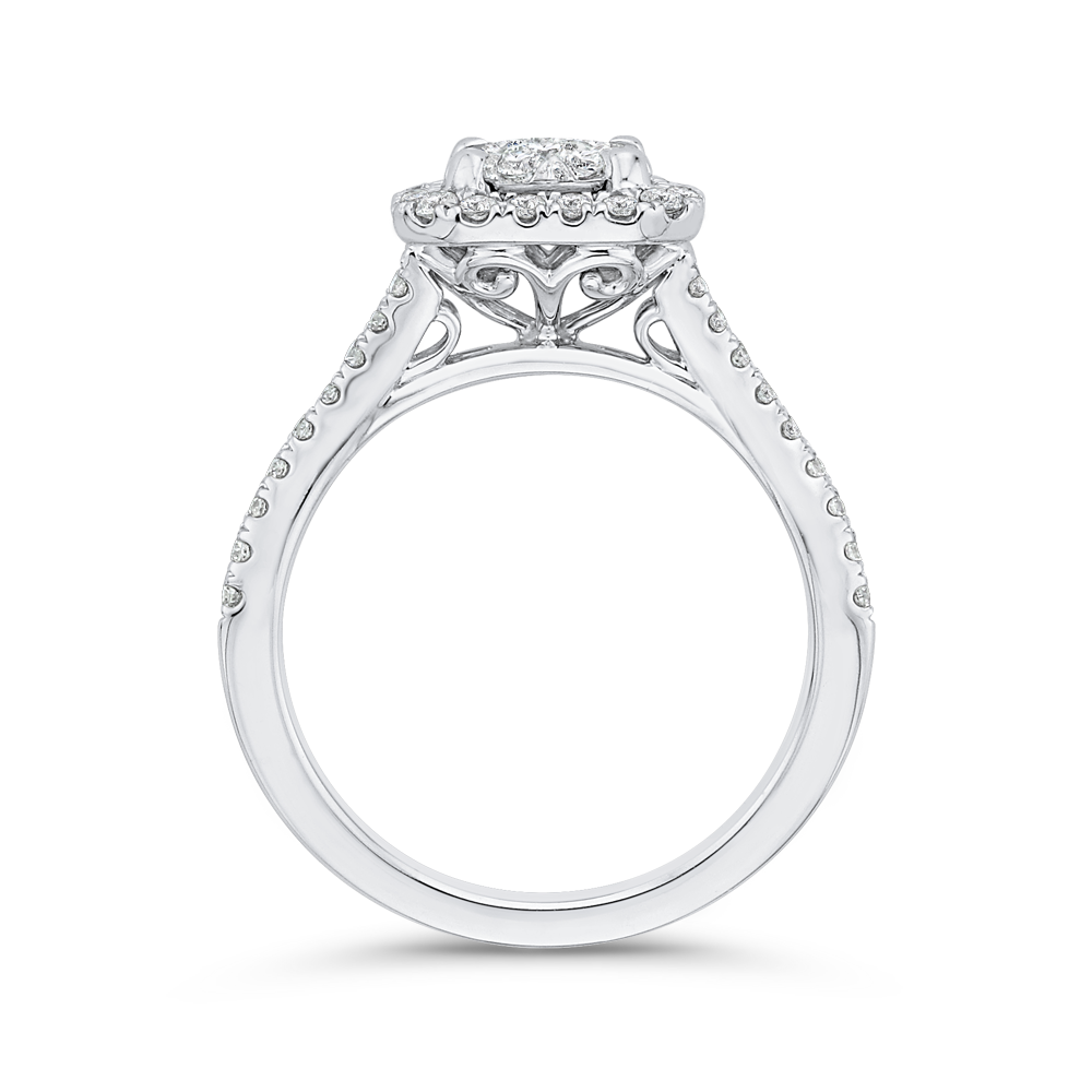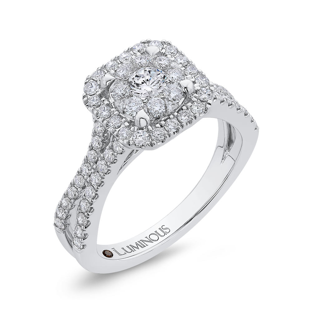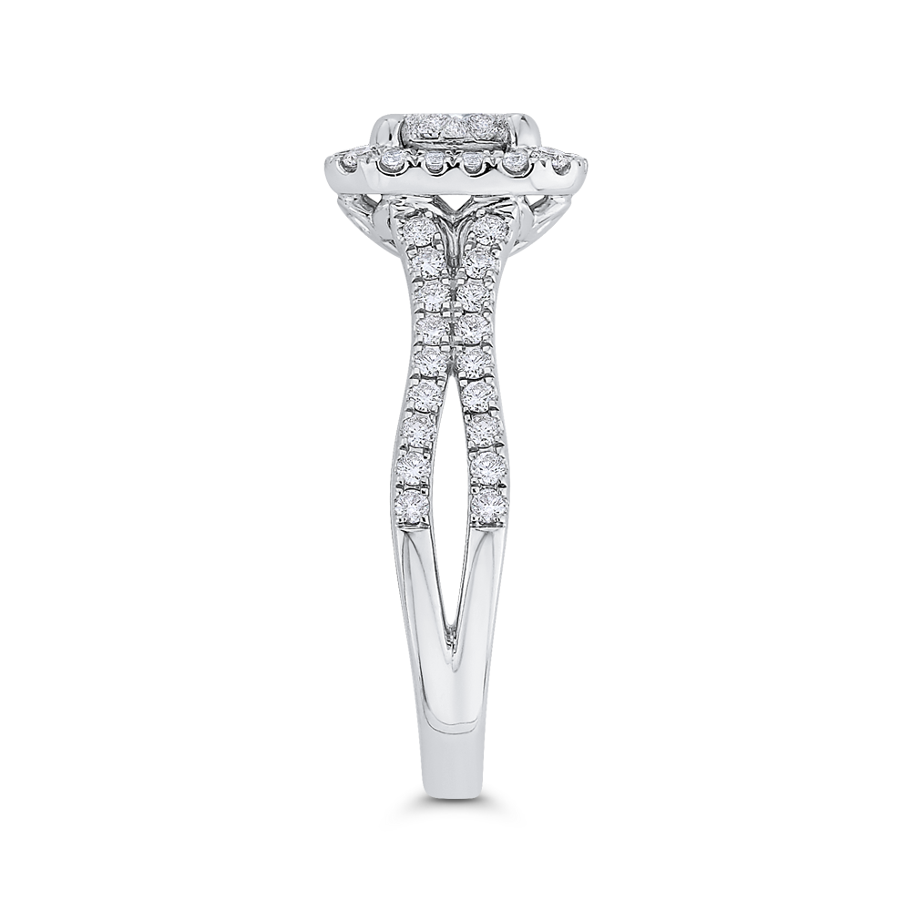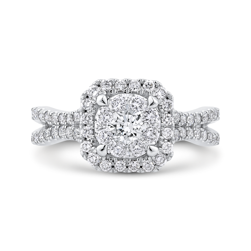 Split Shank Round Diamond Halo Engagement Ring in 14K White Gold