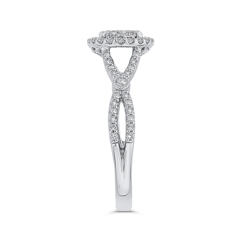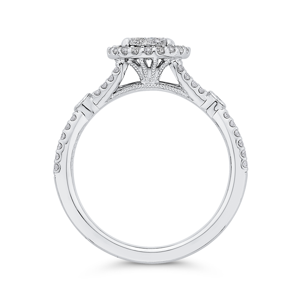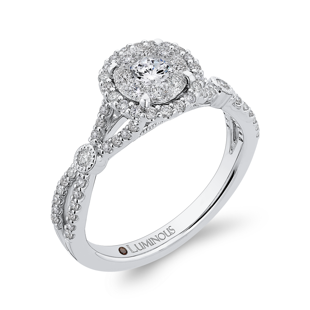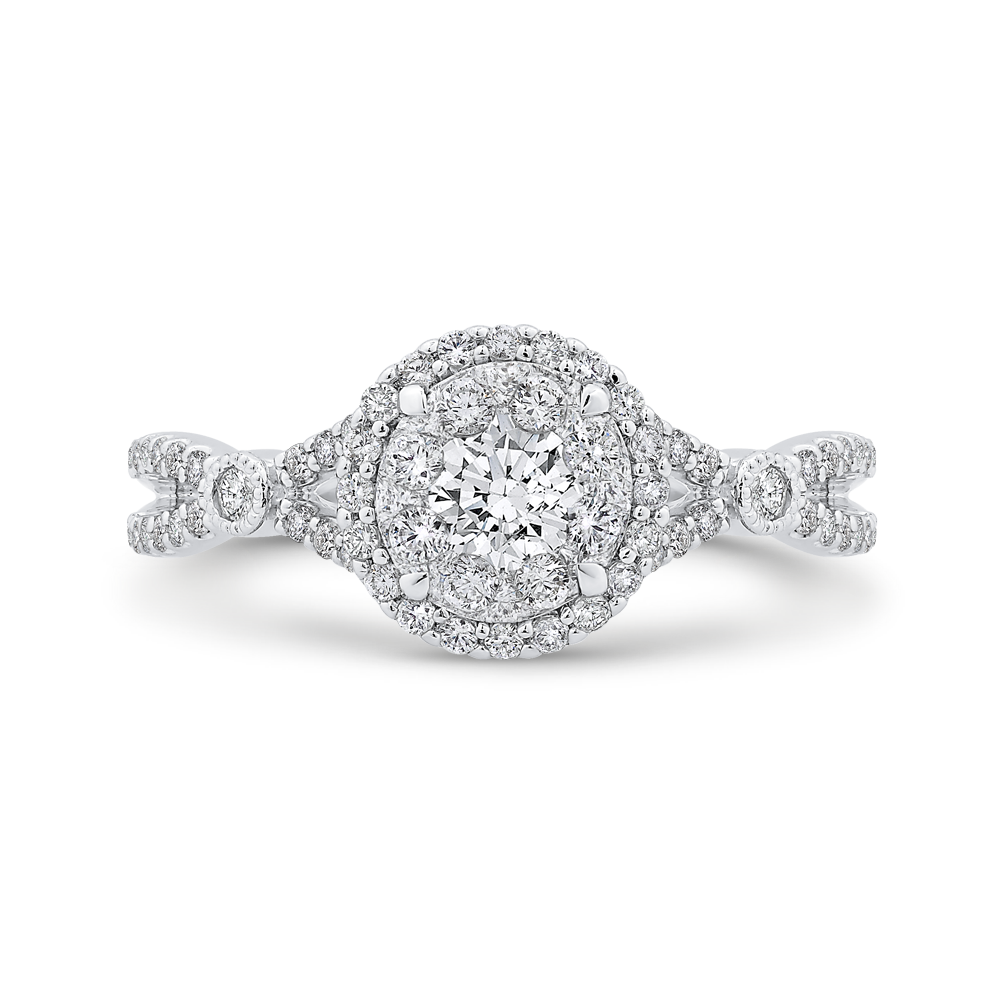 Split Shank Round Diamond Halo Engagement Ring in 14K White Gold