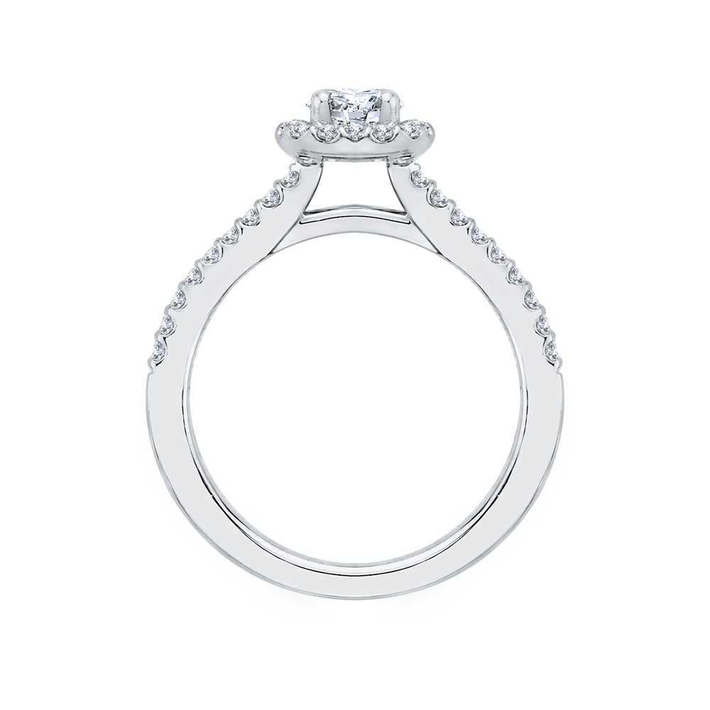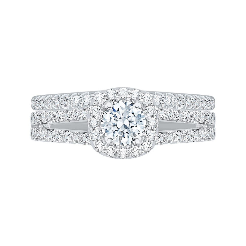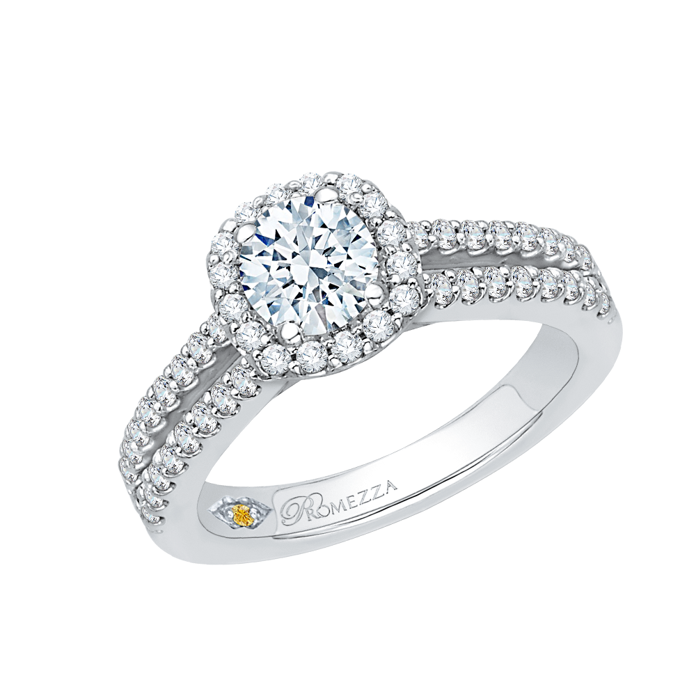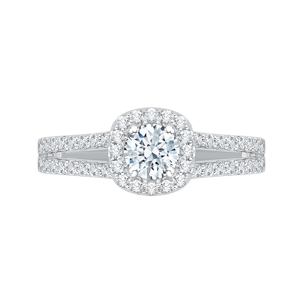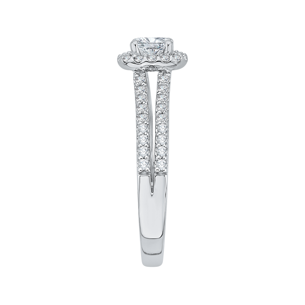 Split Shank Round Diamond Halo Engagement Ring in 14K White Gold