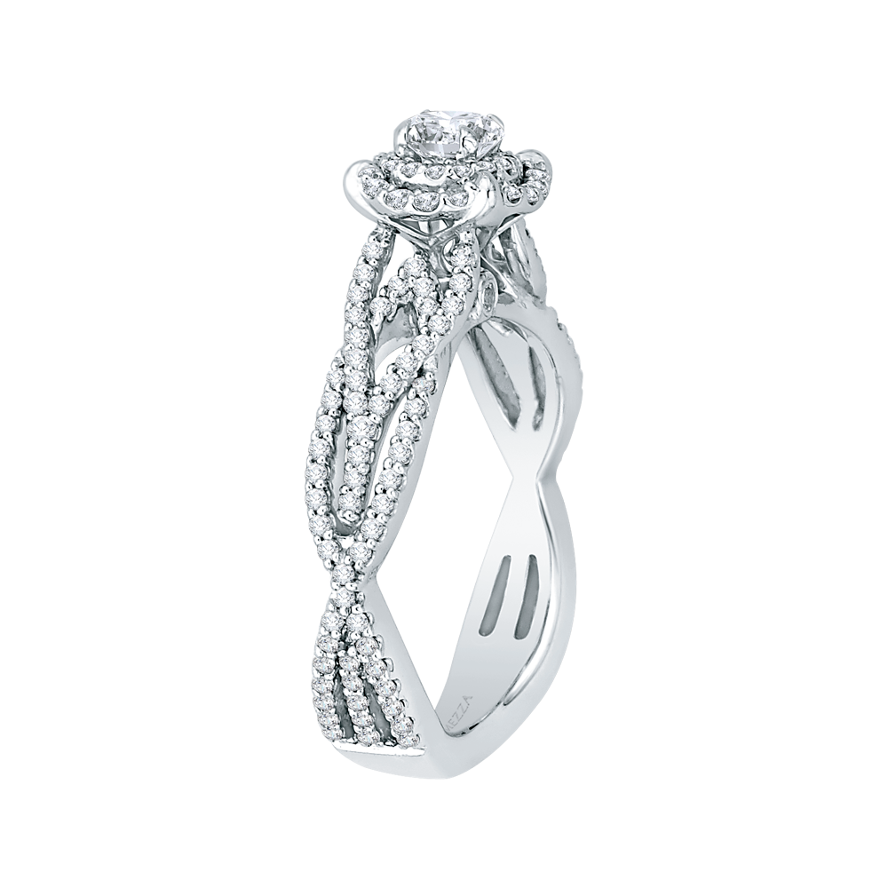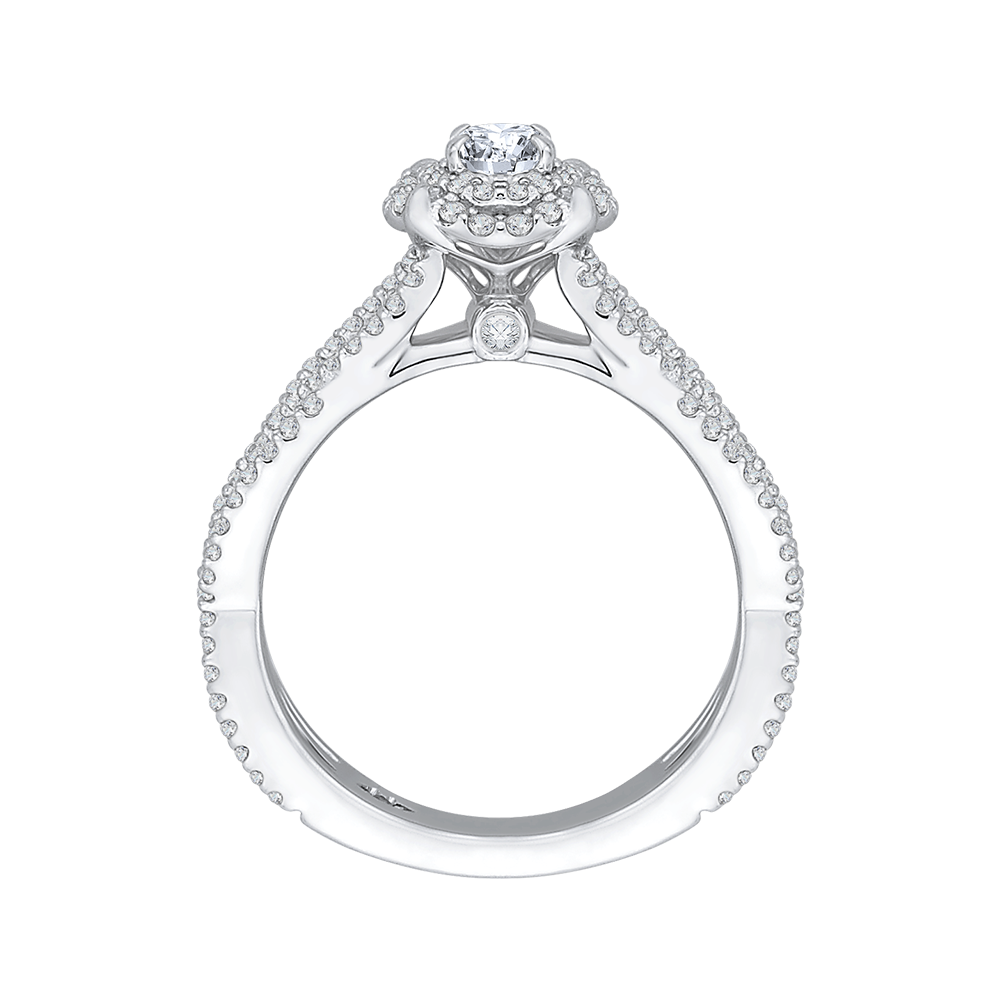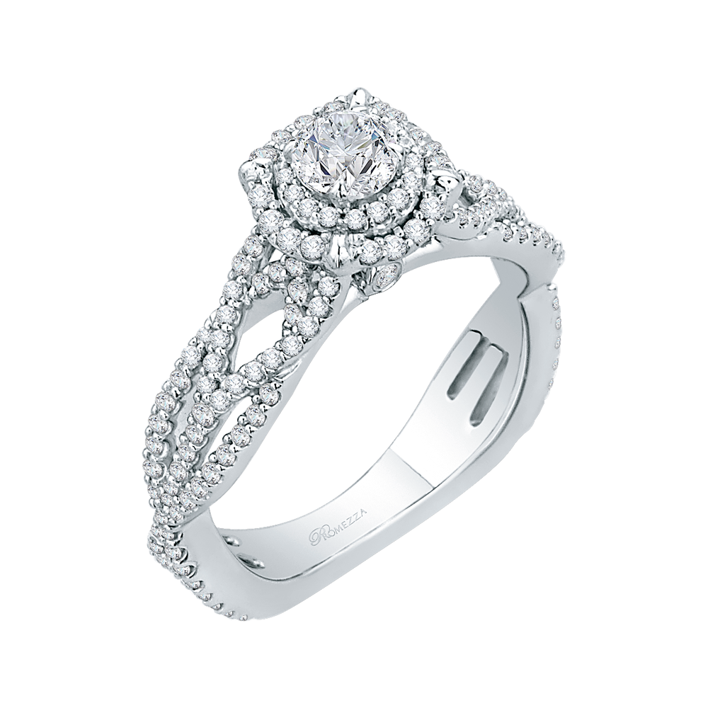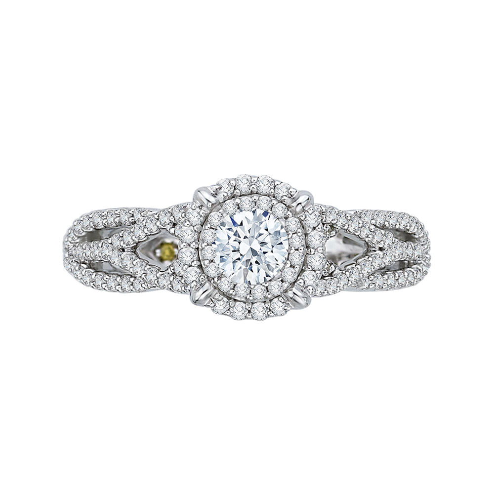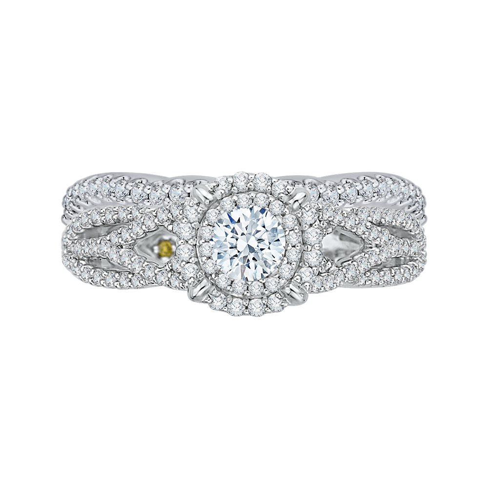 Split Shank Round Diamond Halo Engagement Ring in 14K White Gold