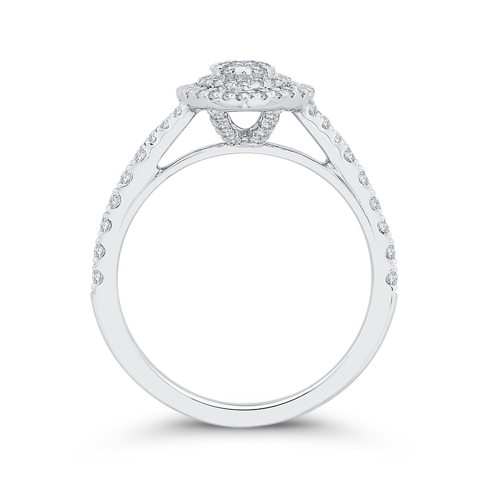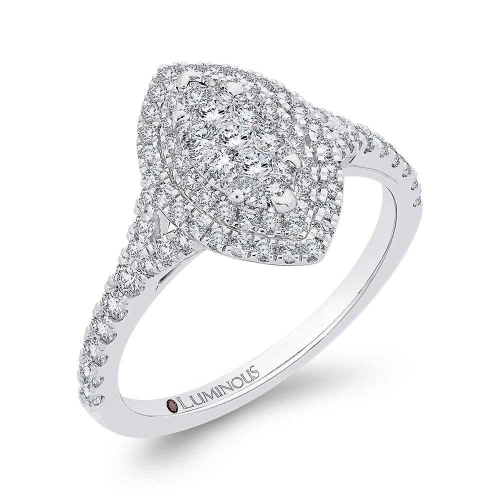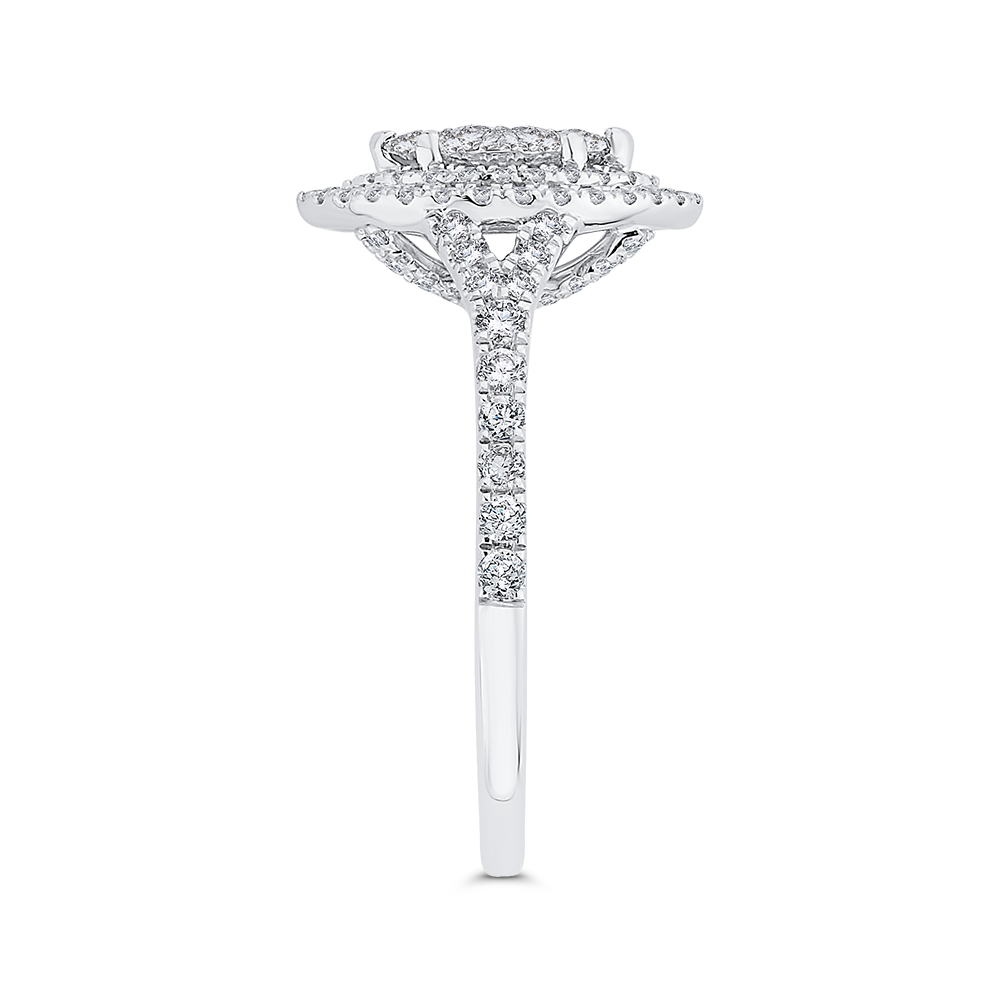 Split Shank Round Diamond Marquise Cut Shape Double Halo Engagement Ring in 14K White Gold