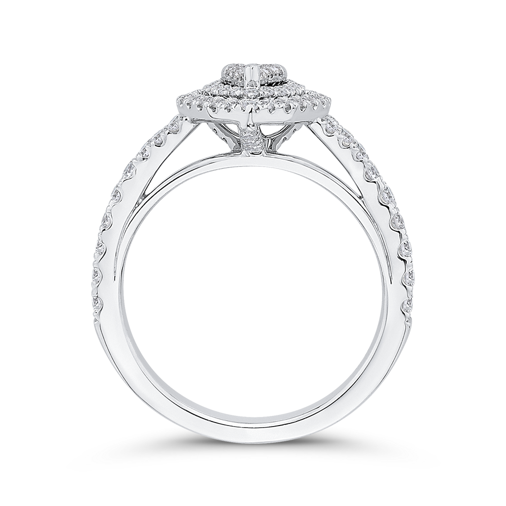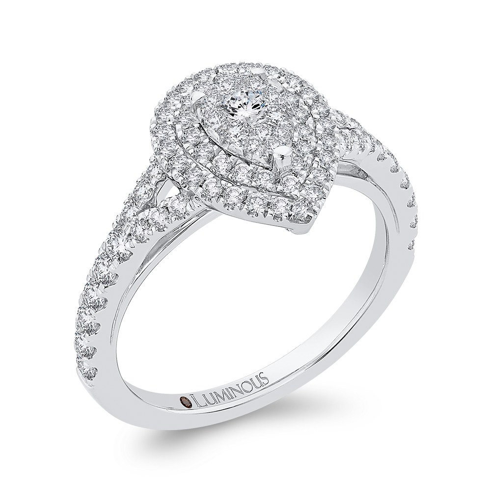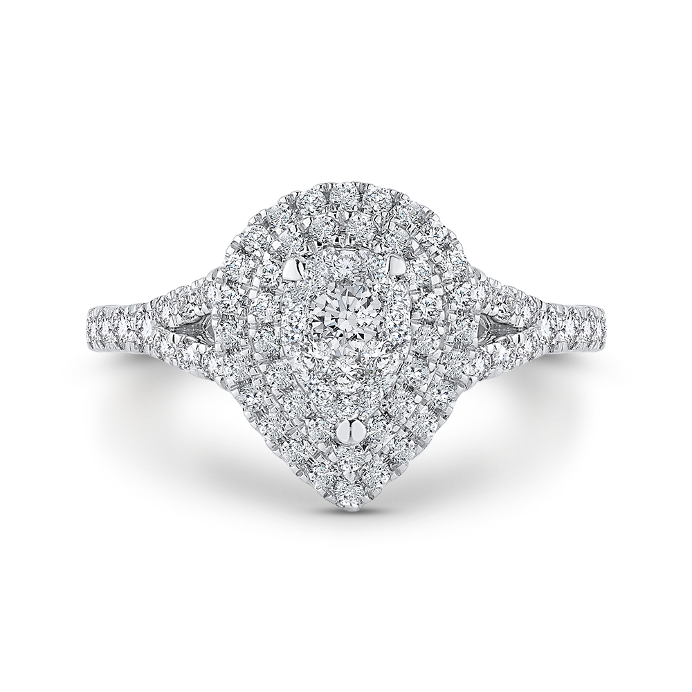 Split Shank Round Diamond Pear Shape Double Halo Engagement Ring in 14K White Gold