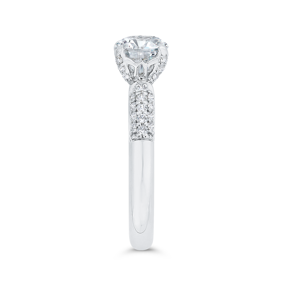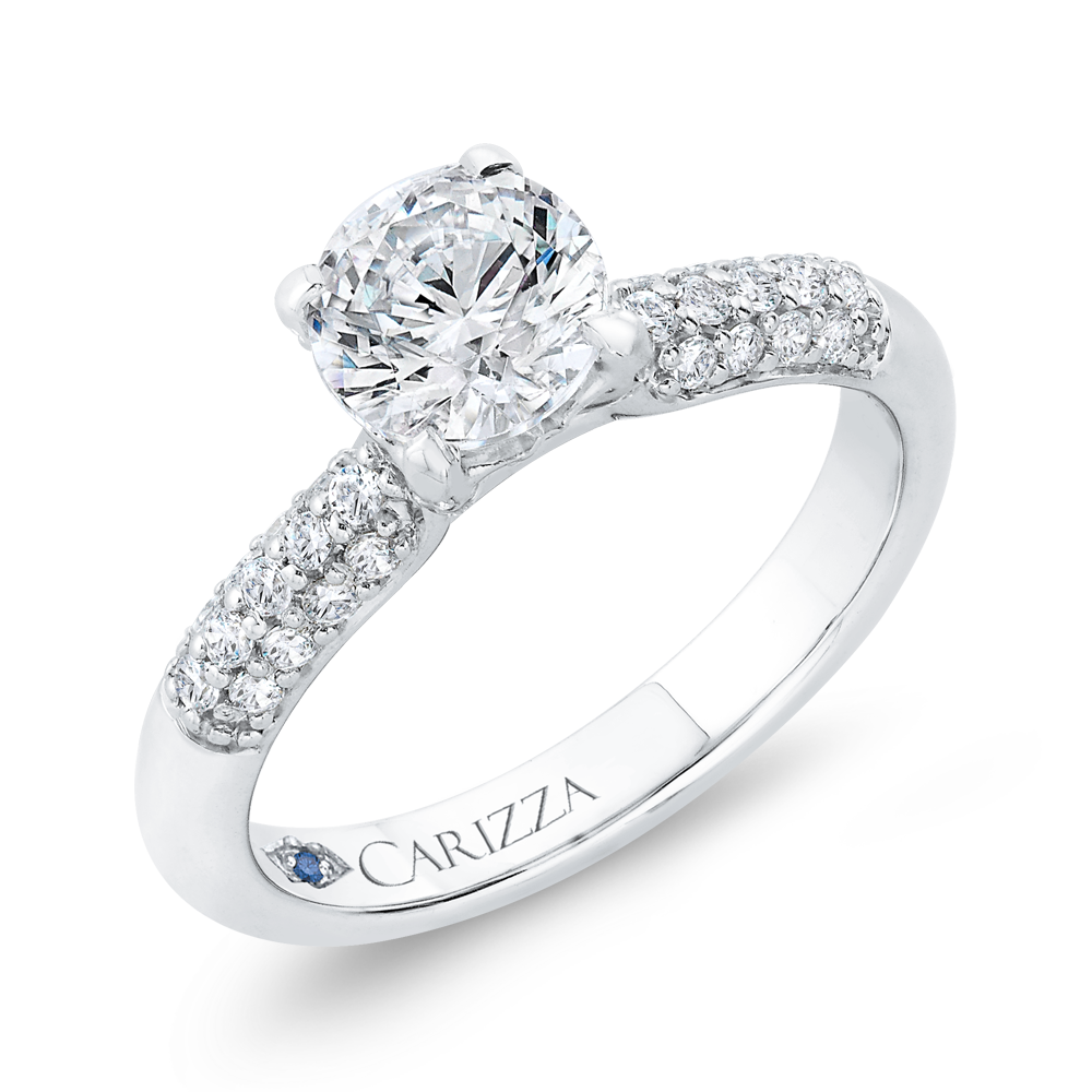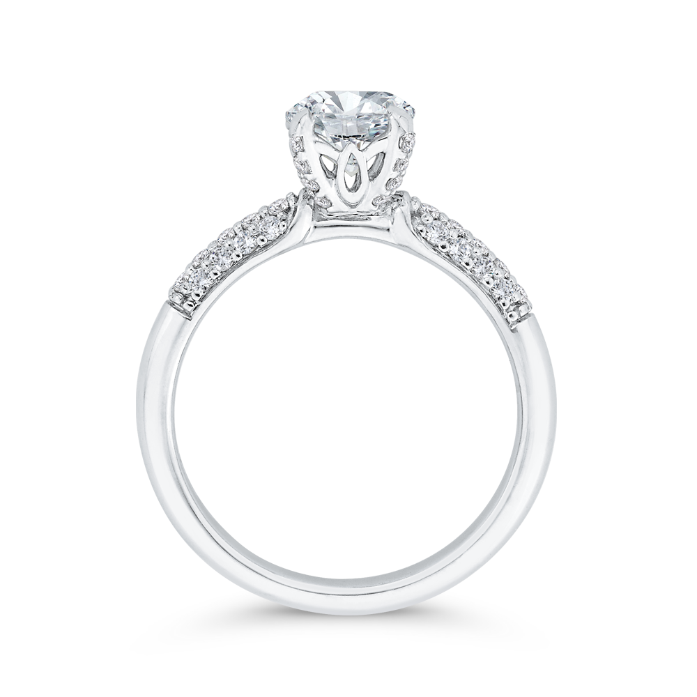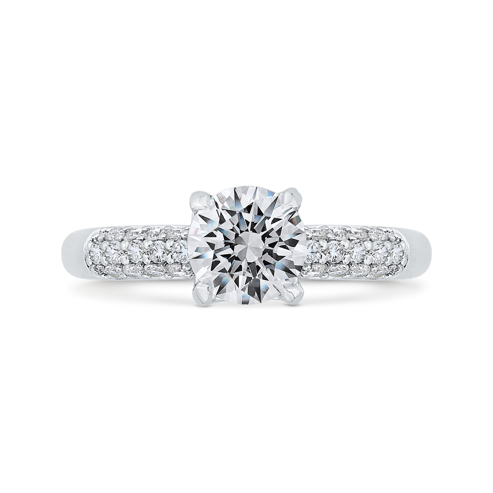 Three Row Round Diamond Engagement Ring in 14K White Gold (Semi-Mount)